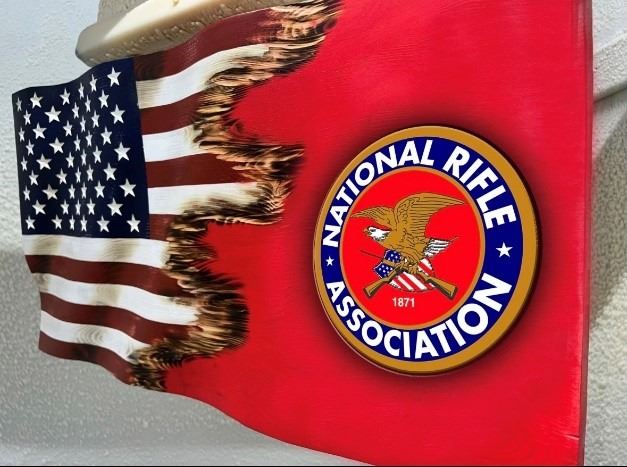 Custom Jacks embodies the spirit of America's heroes, Scottie and Andy, who began this incredible journey. Scottie, a Marine Corps veteran, started crafting wooden flags in his garage and when Andy, a Coast Guard veteran, joined in, something extraordinary happened. Their dedication and artistry shine through the masterpiece before you today. Flag measures 36x19", comes ready to hang and includes a certificate of authenticity. DALLAS SAFARI CLUB THANKS NATIONAL RIFLE ASSOCIATION FOR THIS 100% DONATION. Kathy Purtell, Booth #203.