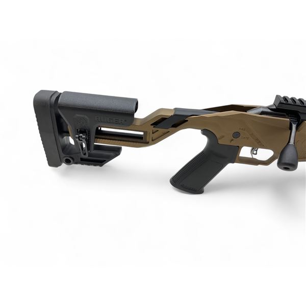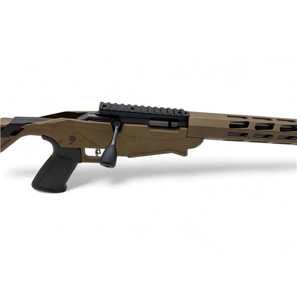Ruger Precision Rimfire Bolt Action Rifle .22LR 18" Threaded Barrel Burnt Bronze Adjustable Stock. Comes with one detachable magazine. Adjustable cheek riser; one piece rail on receiver. This is a non-restricted firearm.