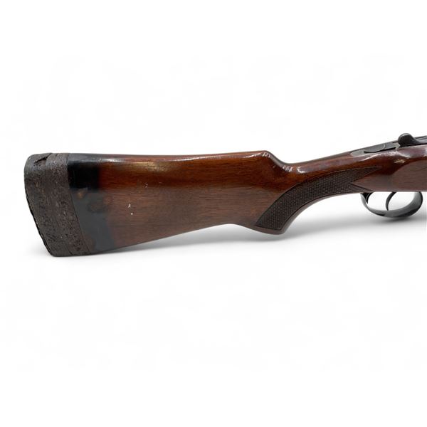 Maroccini Over Under Shotgun 12Ga 2.75" Chambers 28" Barrels Wood Stock. Vent rib is bulged near front and missing bead sight. Fixed chokes; double triggers. Rear stock has been extended and has custom butt pad. This is a non-restricted firearm.