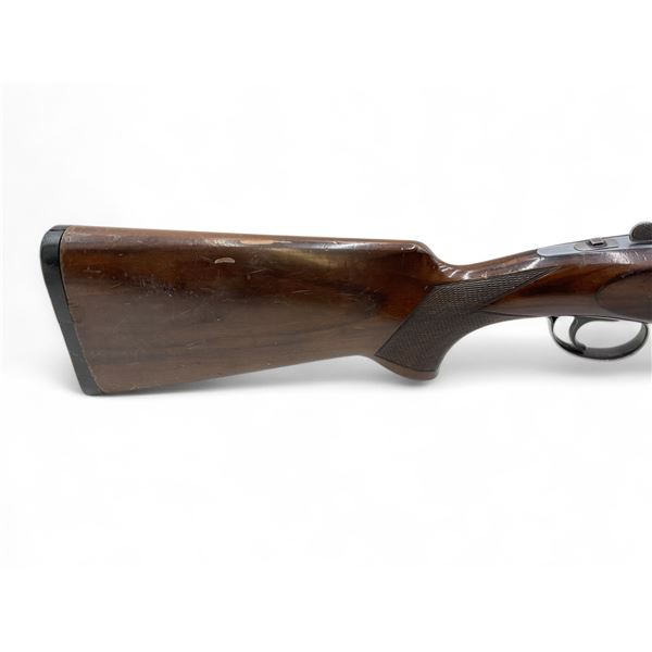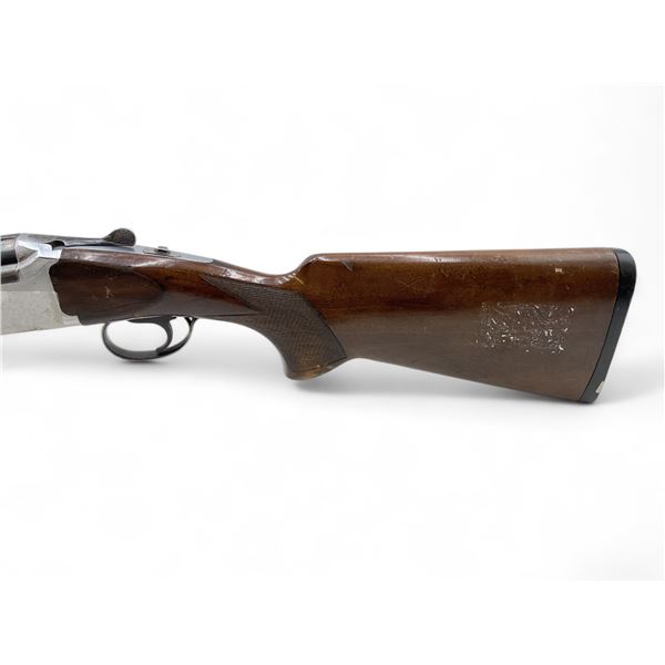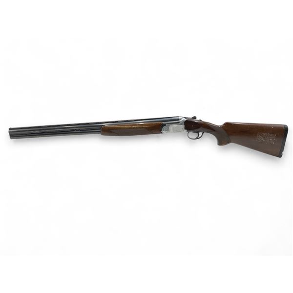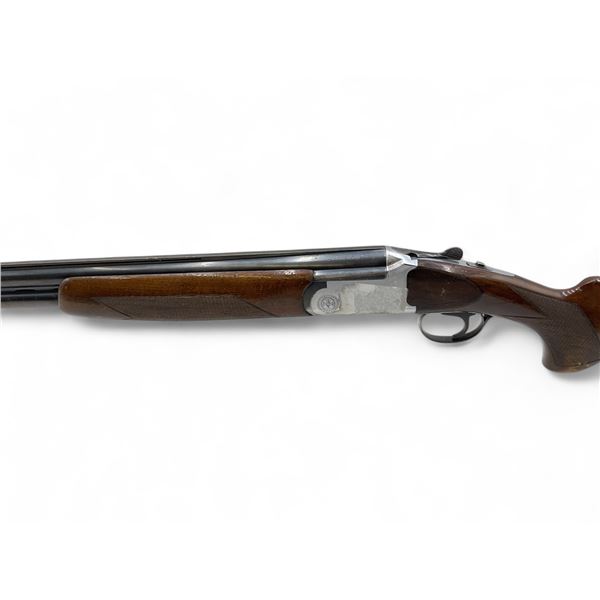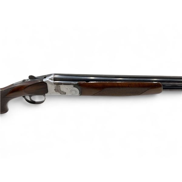 Castellani Over Under Shotgun 12Ga 2.75" Chambers 28" Barrels Wood Stock. Vent rib with bead sight; fixed chokes. Ejectors; single trigger. Plastic butt plate cracked. This is a non-restricted firearm.
