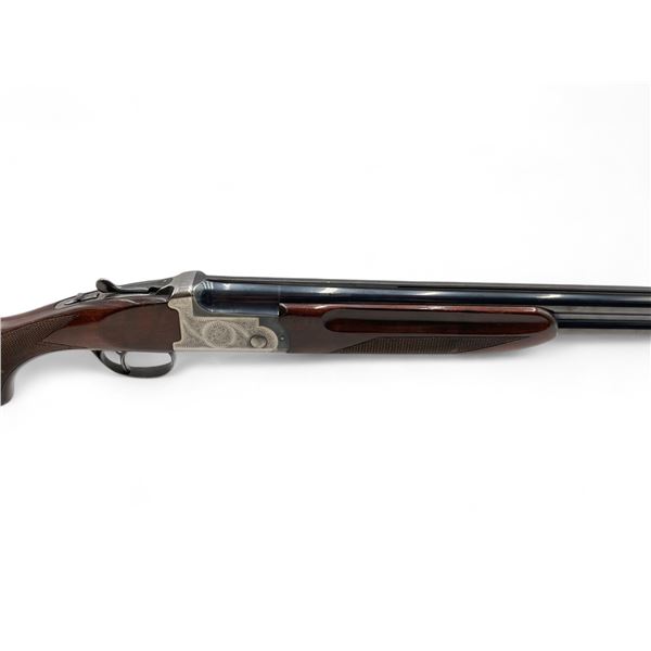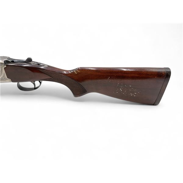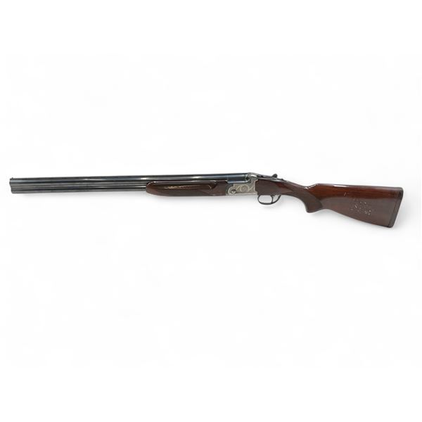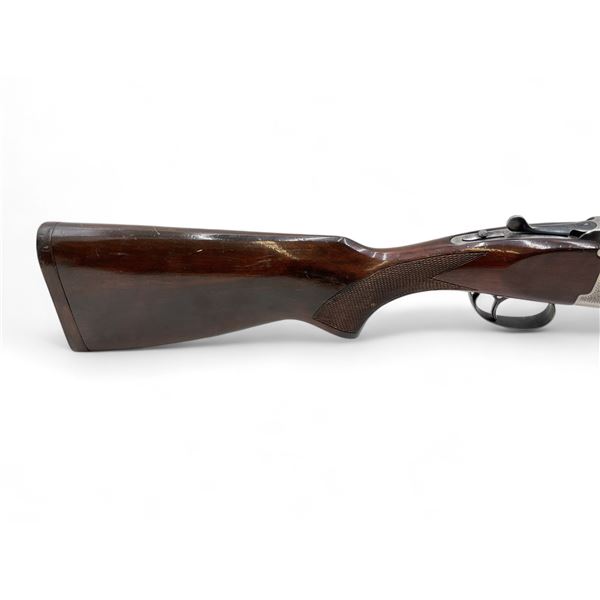 AYA Yeoman Over Under Shotgun 12Ga 3" Chambers 28" Barrels Wood Stock. Vent rib with bead sight; comes with a removable choke in each barrel. Single trigger; ejectors. Rear stock cracked near trigger guard; forend cracked. Rear stock has been extended; no butt pad present. This is a non-restricted firearm.