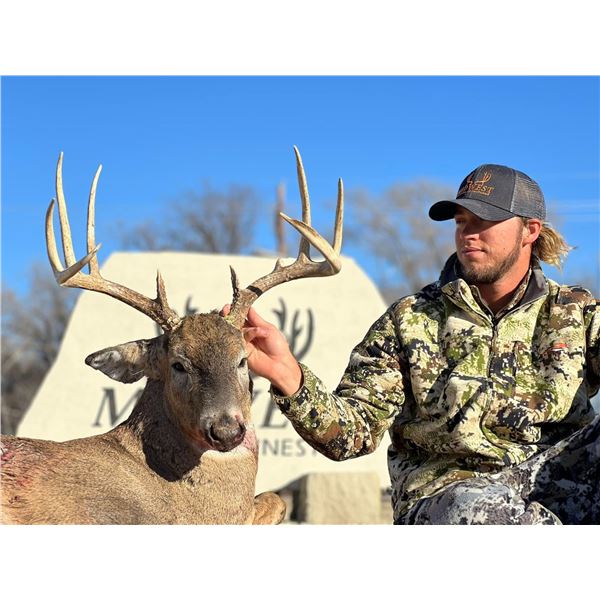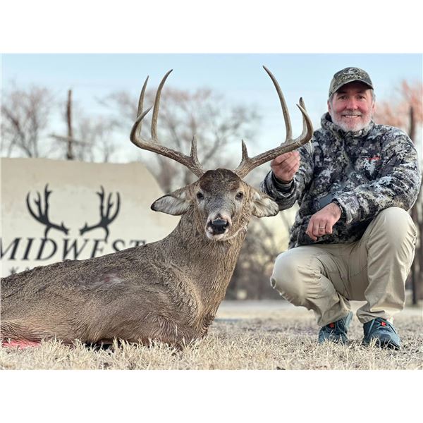 6-day/5-night 3x1 whitetail deer hunt for one hunter in Kansas - includes trophy fee for buck scoring 140"+ (anything less will result in a $1,000 penalty). In the heart of big buck country in Kansas, the Republican River Valley is where numerous record book bucks have been harvested. With 42,000 acres of well-managed prime hunting land with over 200 stands, Midwest Whitetail Adventures has been in business for over 15 years with an 80% rebook rate. Last year, the average buck taken was 157", with the largest being 194". The attention to detail is top shelf. It is all fair chase and free-range for memories that will last a lifetime. Method of take is rifle or archery. This hunt is available September-December 2026 or 2027 and may be upgraded to include additional hunters at $5,000. Transportation during the hunt is mostly by vehicle with hunting done by blinds and stands. This package includes field prep, 5-star lodge accommodations, transportation to/from stands, Wi-Fi, beverages and all meals. Not included are transportation to ranch, hunting license at $500, meat processing, shipping of meat/trophy, ammo and gratuities. DALLAS SAFARI CLUB THANKS MIDWEST WHITETAIL ADVENTURES FOR THIS 100% DONATION. Seth McGinn, seth@kansasfinest.com, 402-721-7347, Booth #1936.