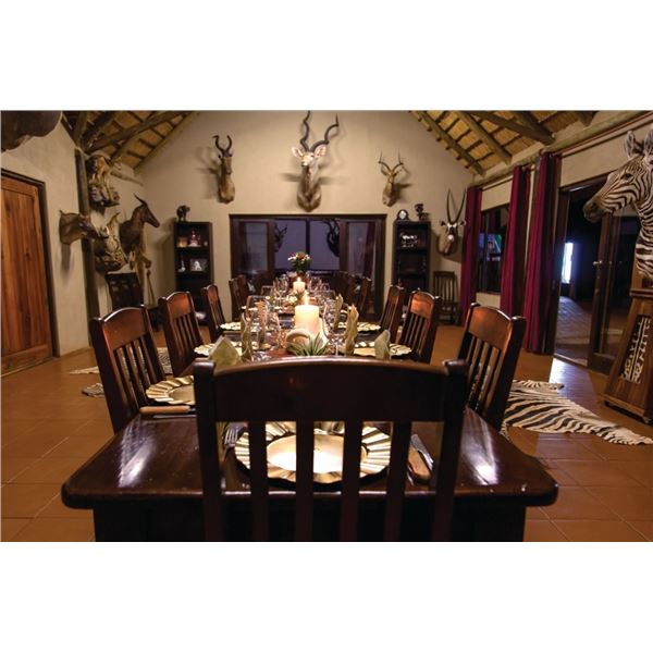The Ultimate One-Stop-Safar-Shop, Infinito Safaris, is proud to introduce a fantastic 12-day (5x hunting days, 2x travel days, 2x touring days, 2x arrival/departure days) 2x1 surf and turf safari for two hunters in South Africa and Mozambique - includes $2,000 trophy credit, $1,000 taxidermy credit through Infinito Taxidermy, $1,000 trophy shipment credit through Safari Fly Logistix, full day of game viewing in Kruger National Park and 2-day Mozambique beach holiday with deep sea fishing (at cost). Hunt our famous 40,000-acre Buffalo Valley conservancy only 2 hours from the Johannesburg airport for plains game or one of our spectacular Cape buffalo bulls. Drive through the scenic Lowveld of South Africa to our beautiful lodge bordering the world-famous Kruger National. Relax and wind down after the hunt. Chase the Big Five with your camera on our exclusive guided tour in the wildlife teeming southern part of the Kruger National Park. Enjoy the magic of travelling into mysterious and vibrant Mozambique from our Infinity Kruger Lodging. Transfer from Maputo by boat to our luxurious fishing lodge on the Santa Maria Peninsula. Enjoy homestyle cooked fresh seafood only feet away from the warm Indian Ocean waters. Chase the monsters of the deep in Africa's own Jurassic Park for fishing. Tire your arms on monster marlin, sailfish, wahoo, tuna, king mackerel, 100 lb. giant trevally's and many, many more! Schedule with outfitter March-June 2026 or 2027. This package includes full board accommodations including lodging and meals, taxidermy/trophy credits/trophy shipping as listed, touring as listed, park entrance fees and PH services. Not included are international airfare, extra days at $375/hunter, 2x1 guiding, road transfers at $950, air transfers at approx. $450, alcoholic beverages, deep sea fishing in Mozambique at $1,500/day (min 2x days), and gratuities. NOTE: New clients only. Book early. Due to high booking, dates have to be planned and discussed with outfitter as soon as possible. DALLAS SAFARI CLUB THANKS INFINITO SAFARIS FOR THIS 100% DONATION. Erika van Rooyen, erika@infinito-safaris.com, 011 27 82 848 8078, Booth #1501.