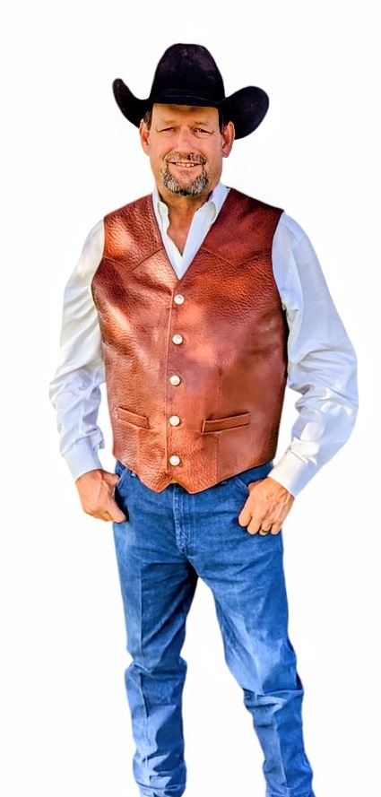 Men's western vest in American bison. Vest features 9-inch interior accessory pockets on each side which can be utilized as conceal & carry compartments, if desired, interior breast pocket for cell phone, wallet, etc., exterior zipper breast pocket and two additional exterior zipper pockets on each side. Available in sizes M-3XL. Color options include Peanut, Black and Espresso. Visit donor at their booth for sizing and color options. DALLAS SAFARI CLUB THANKS LOMA VISTA OF TEXAS FOR THIS 100% DONATION. Stanley Glsscock, lomavistatexas@gmail.com, 830-307-0700, Booth #531.