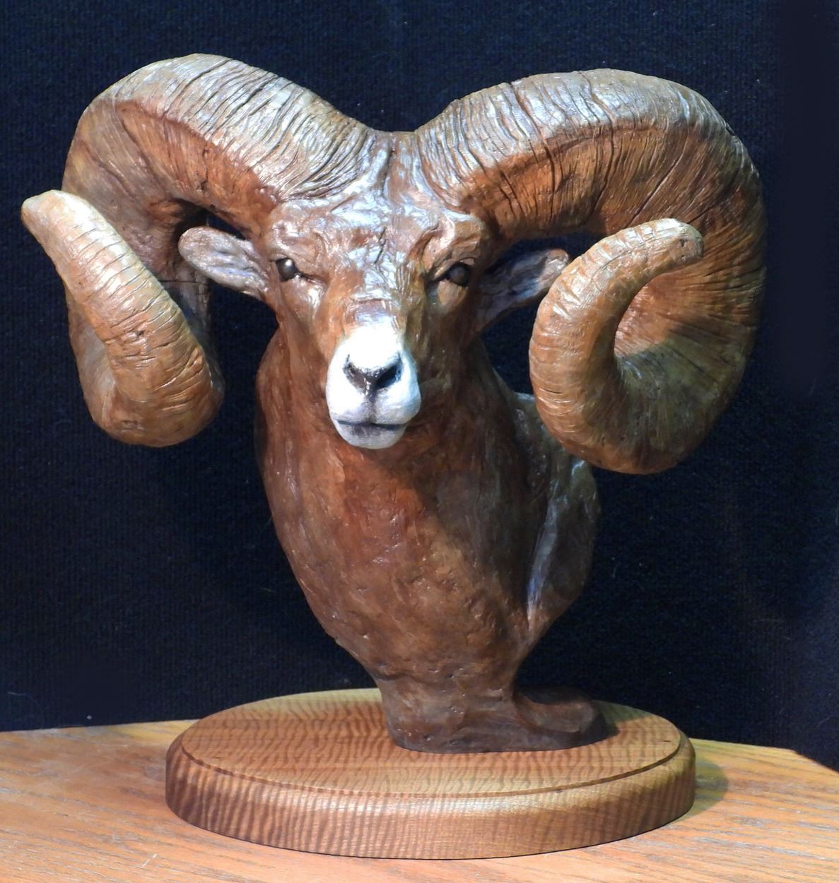 "Rocky Mountain King" - Limited edition #2/15 bronze by Cynthie Fisher, measures 18x16x12. This bronze depicts a majestic Rocky Mountain bighorn ram in his prime; there is nothing more impressive in North America! Cynthie has been a long-time exhibitor and donor to DSC and the DSC Foundation Gala. DSC FOUNDATION THANKS CYNTHIE'S WILDLIFE ORIGINALS FOR THIS 100% DONATION. Cynthie Fisher, cynthieart@gmail.com.