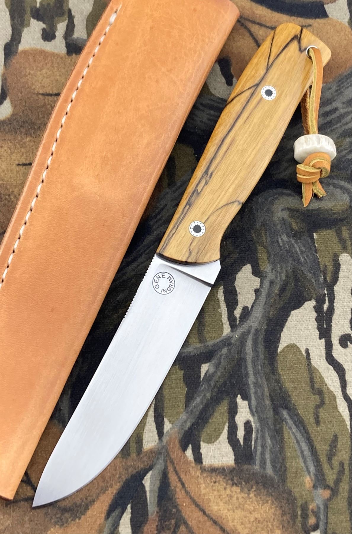 Gene Ingham has made this beautiful, custom Semi Skinner w/CPM Magnacut fixed blade knife specifically for the DSC Foundation Gala. Measures 8.5" overall with a 4" blade, black & white ebony handle, mosaic pins and Gene Ingram's signature sheath. One-of-a-kind and a true work of art! DSC FOUNDATION THANKS CRAIG DIXON FOR THIS 100% DONATION.