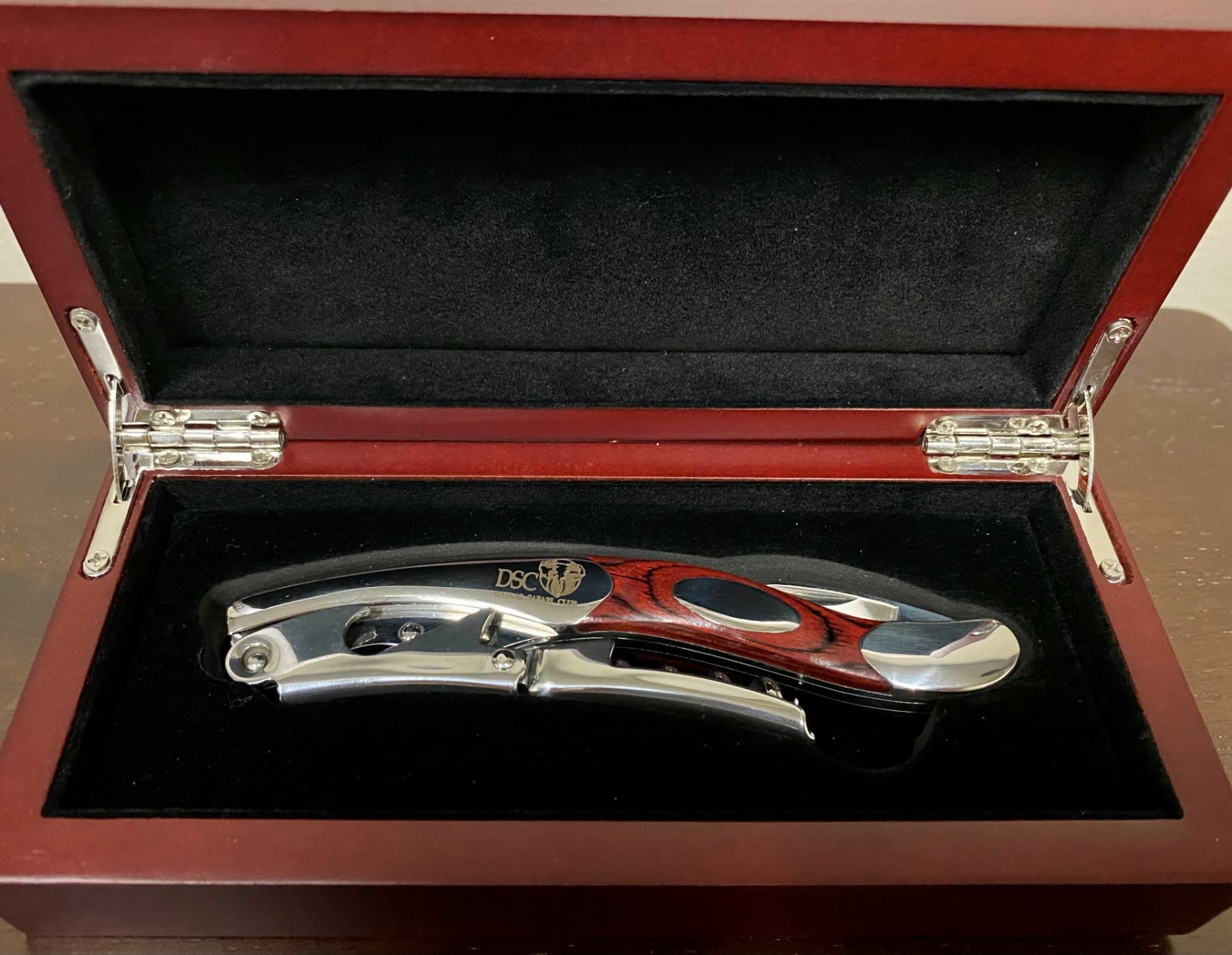 Lot 155 FRIEND OF DSCF: Custom Engraved DSC Sommelier Corkscrew In Wood Box