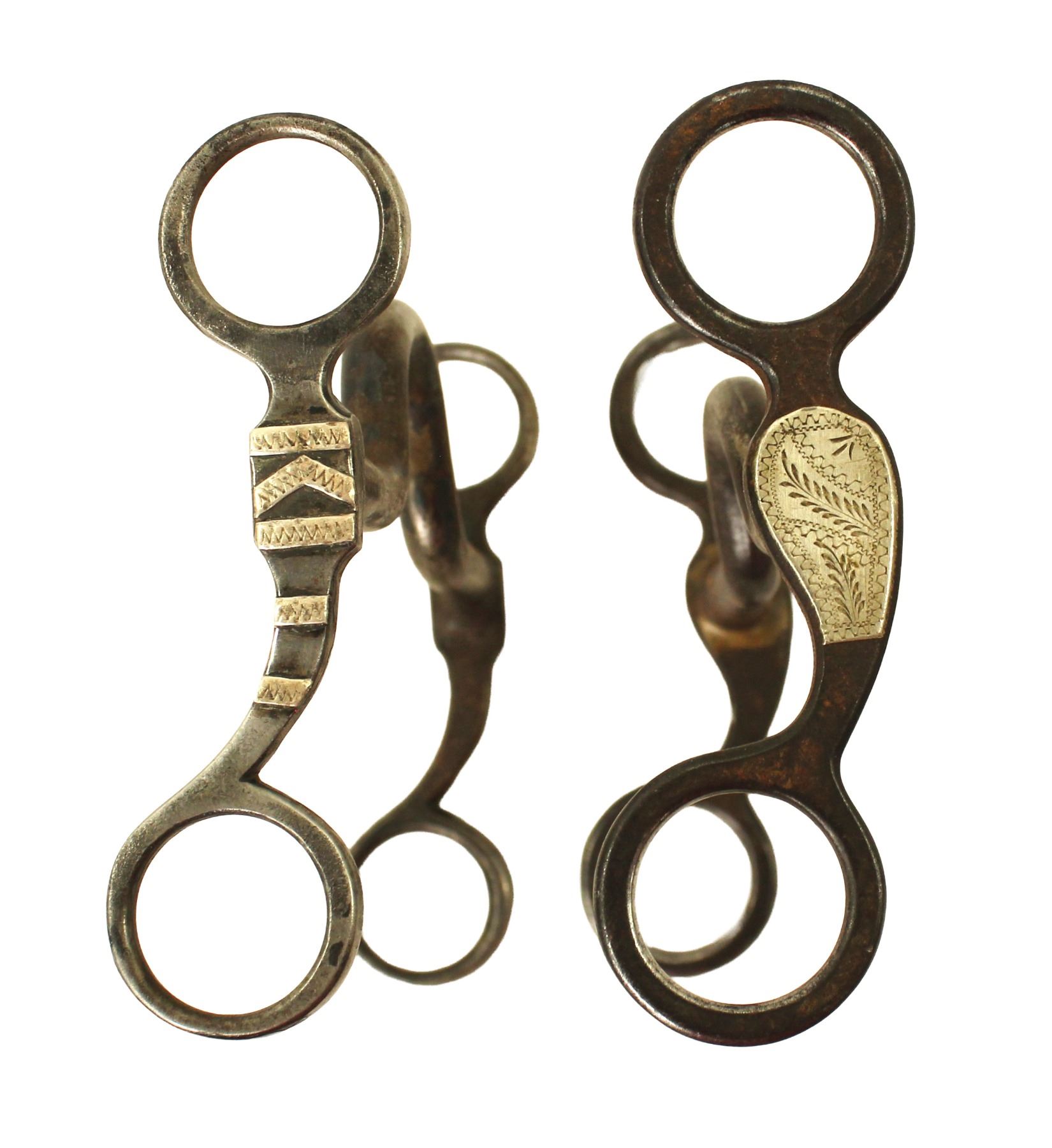 Two Texas style iron grazing bits, one Paddy Ryan style Crockett bit and one Kelly Bro's bit.