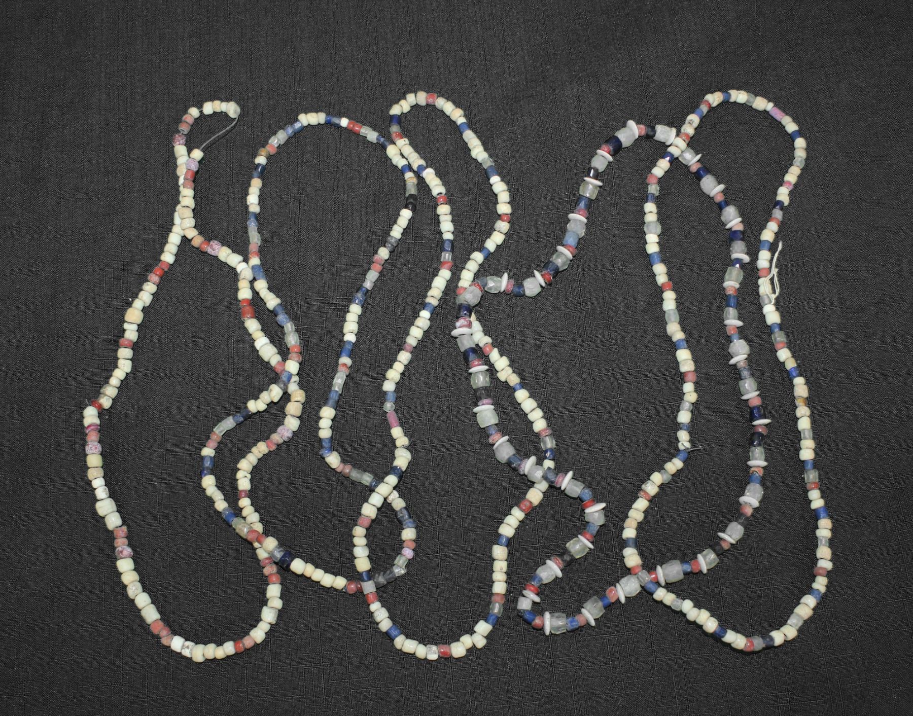 Pre 1900's five strand set of Native Amreican strung trade beads featuring great colors and character.