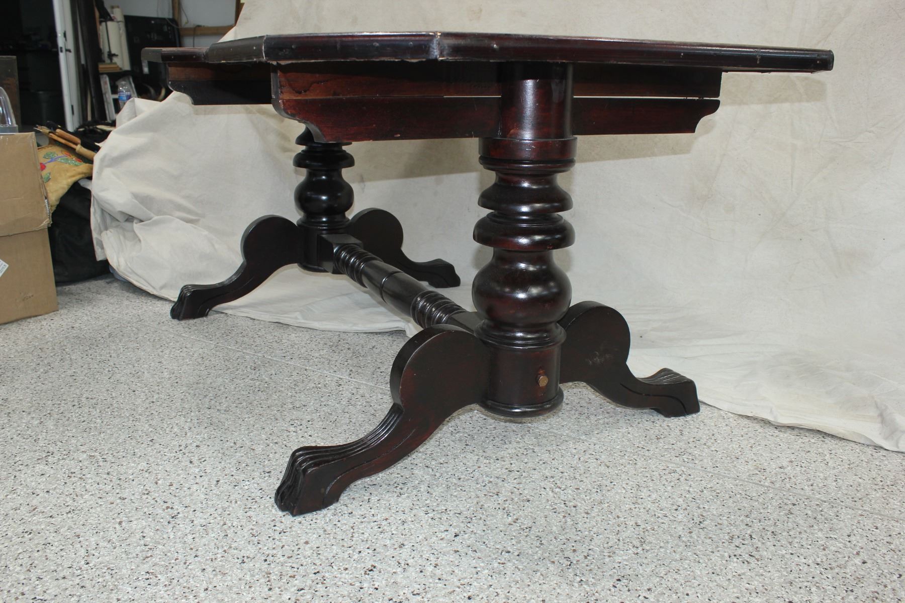 Hard to find original antique Faro gaming table, in excellent condition with leather inlaid top, nicely crafted base and detailed claw feet.67"x 40"