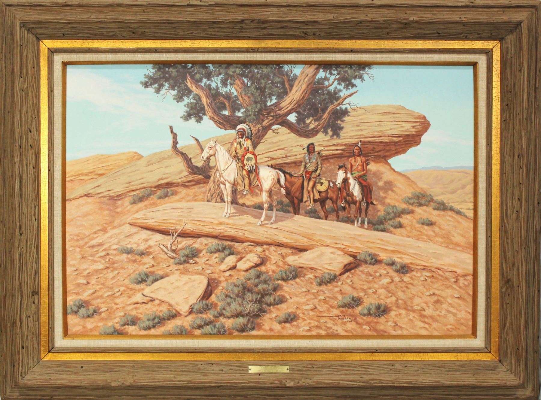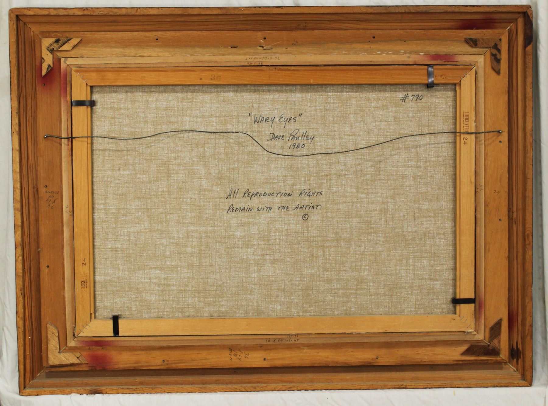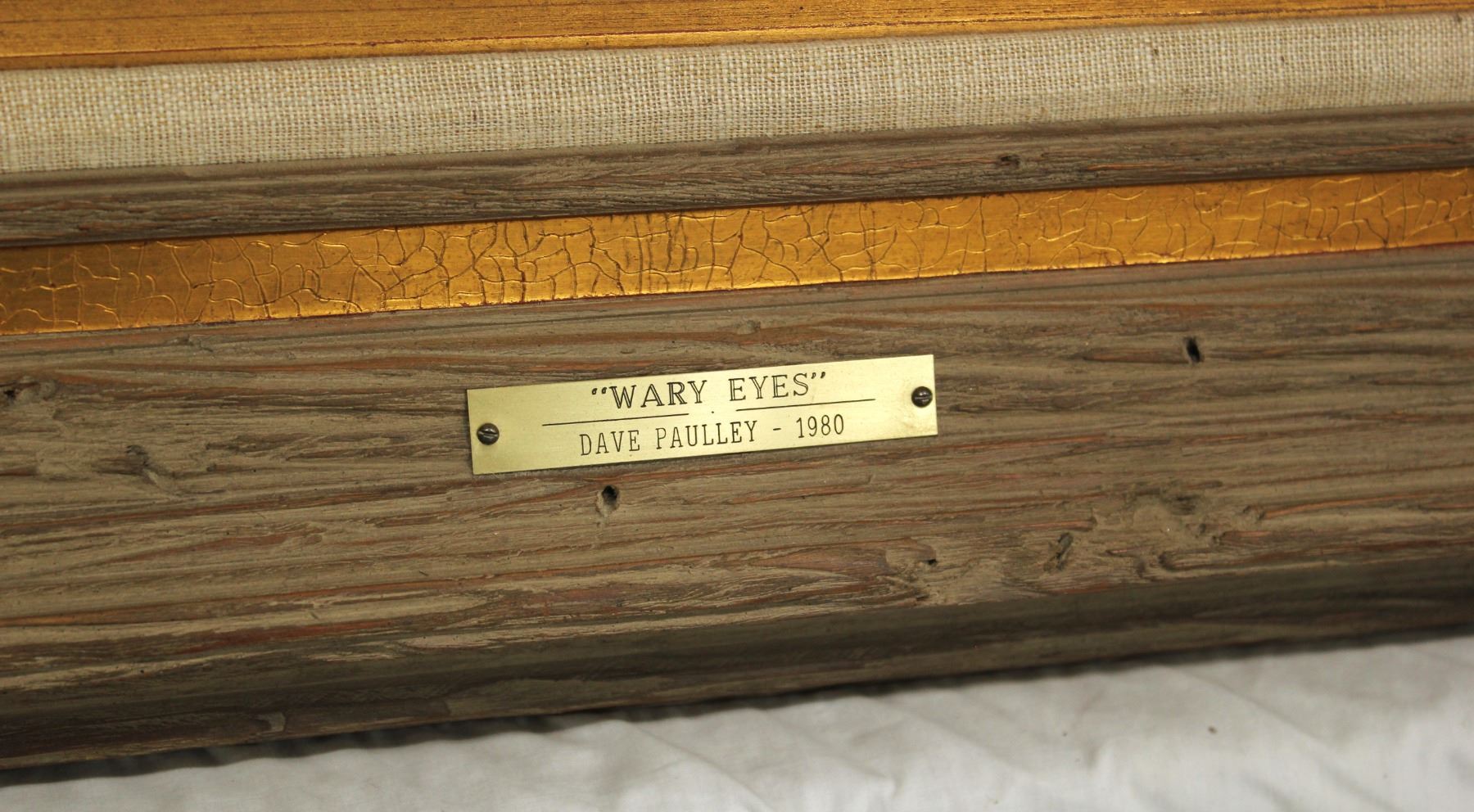 Nicely presenting oil on canvas titled "Wary Eyes", dated 1980, and signed in lower right. Measuring 24"x 36" sight, and beautifully framed to 35"x 48".