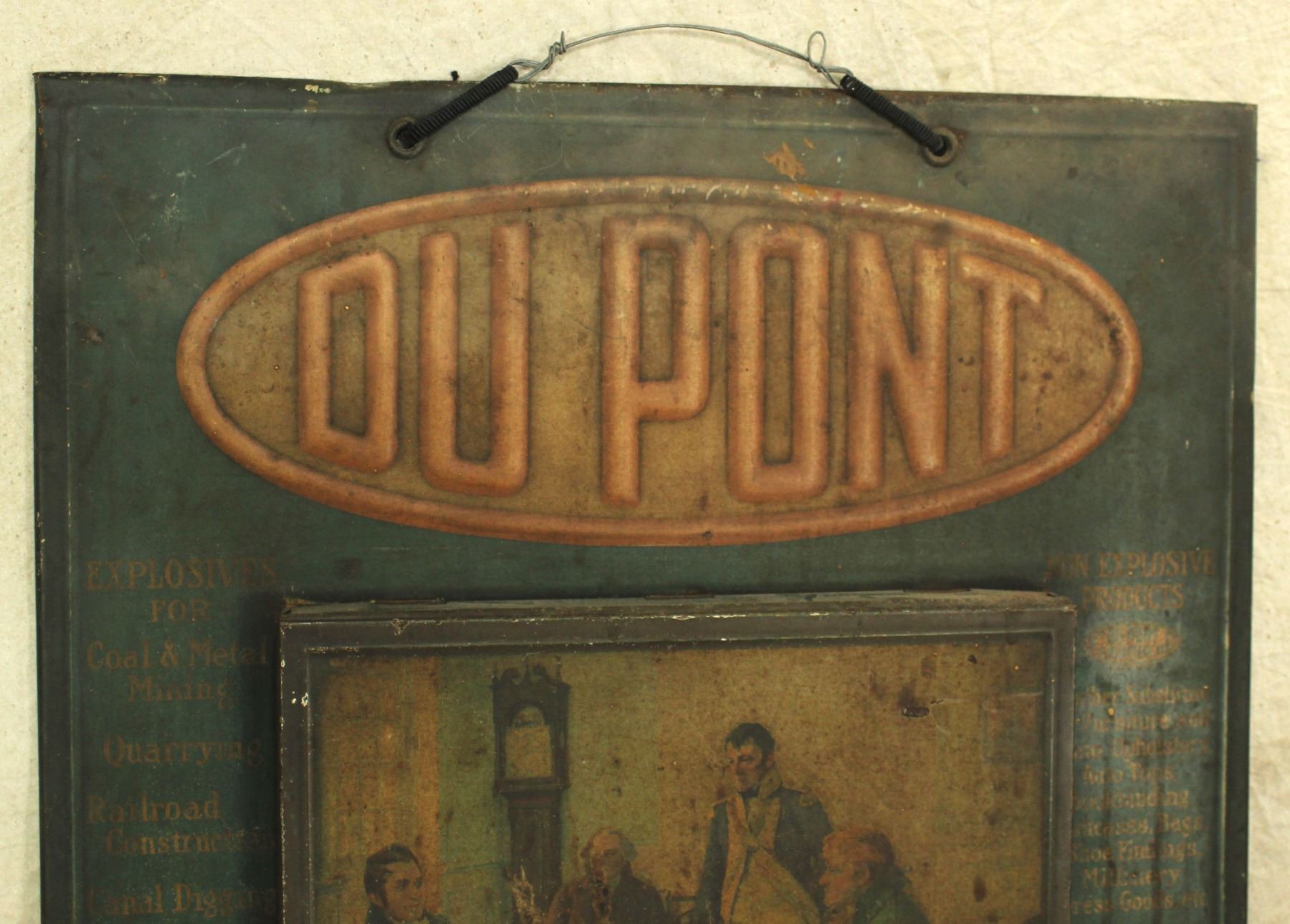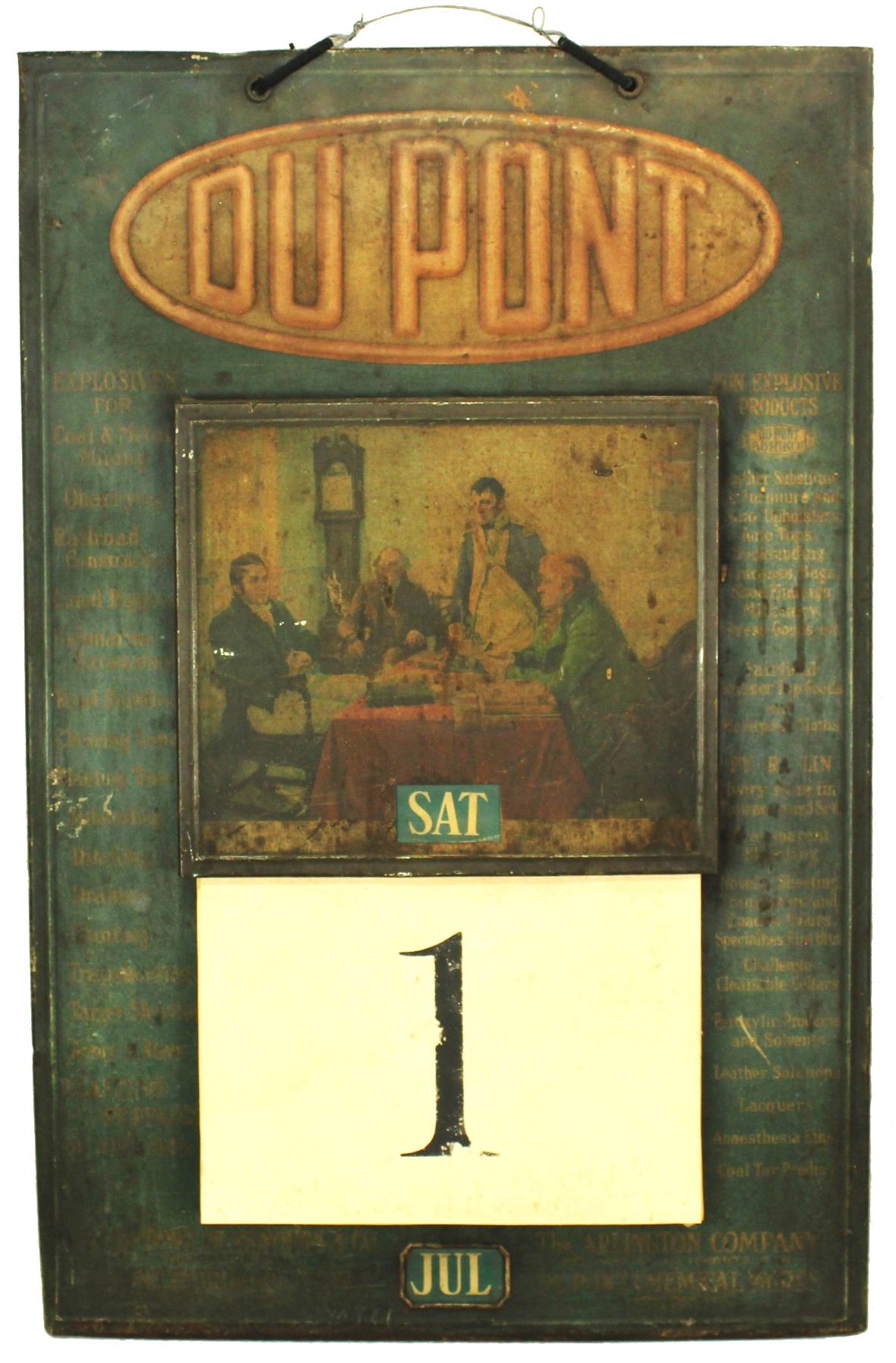 Rich colored Dupont ammunition and black powder metal advertising calendar, measuring 19"x 29".