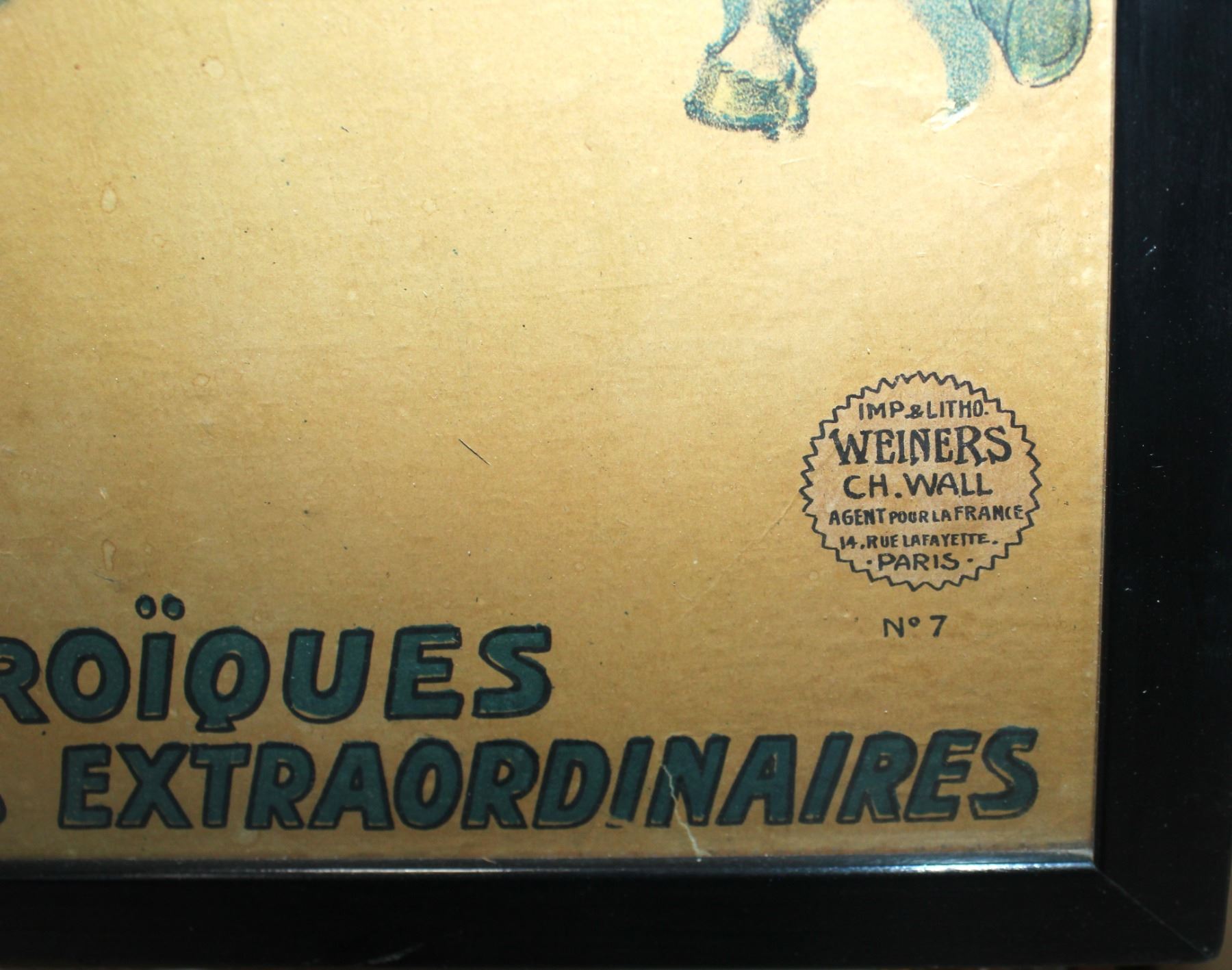 This extraordinary poster showcases a stunning glimpse into the larger-than-life spectacle that was Buffalo Bill's Wild West Congress of Rough Riders, one of the most iconic entertainment world wide extravaganzas of the late 19th and 20th centuries.This Paris Show poster shows lots of action and lithographer marks. Dimensions 39 1/2"x 28".