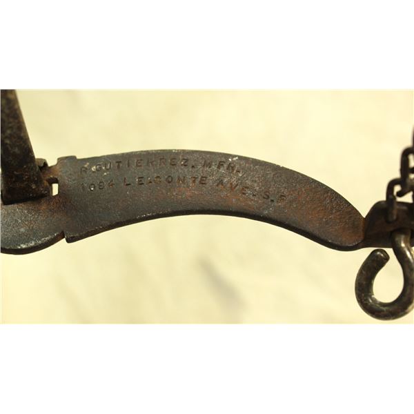 A seldom seen loose jaw bit with exagerated spoon mouth piece, beautifully full silver overlaid cheeks, and finished with rarely seen "LaConte" address maker mark.