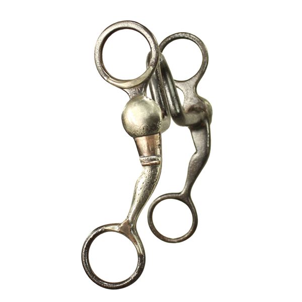 An extra fine lady leg bit with two tone design of silver and possibly gold, with detailed engraving and tall port mouth.