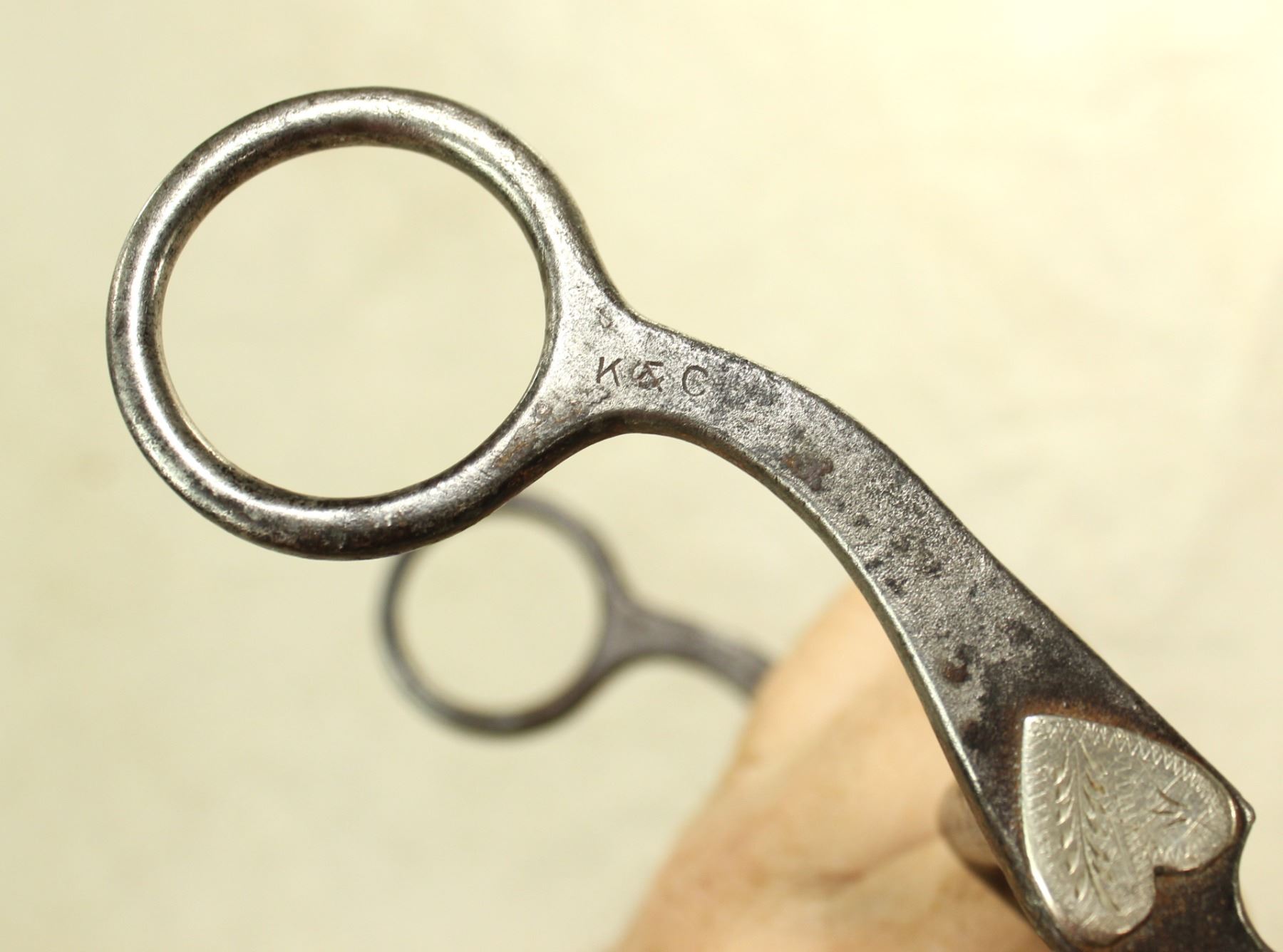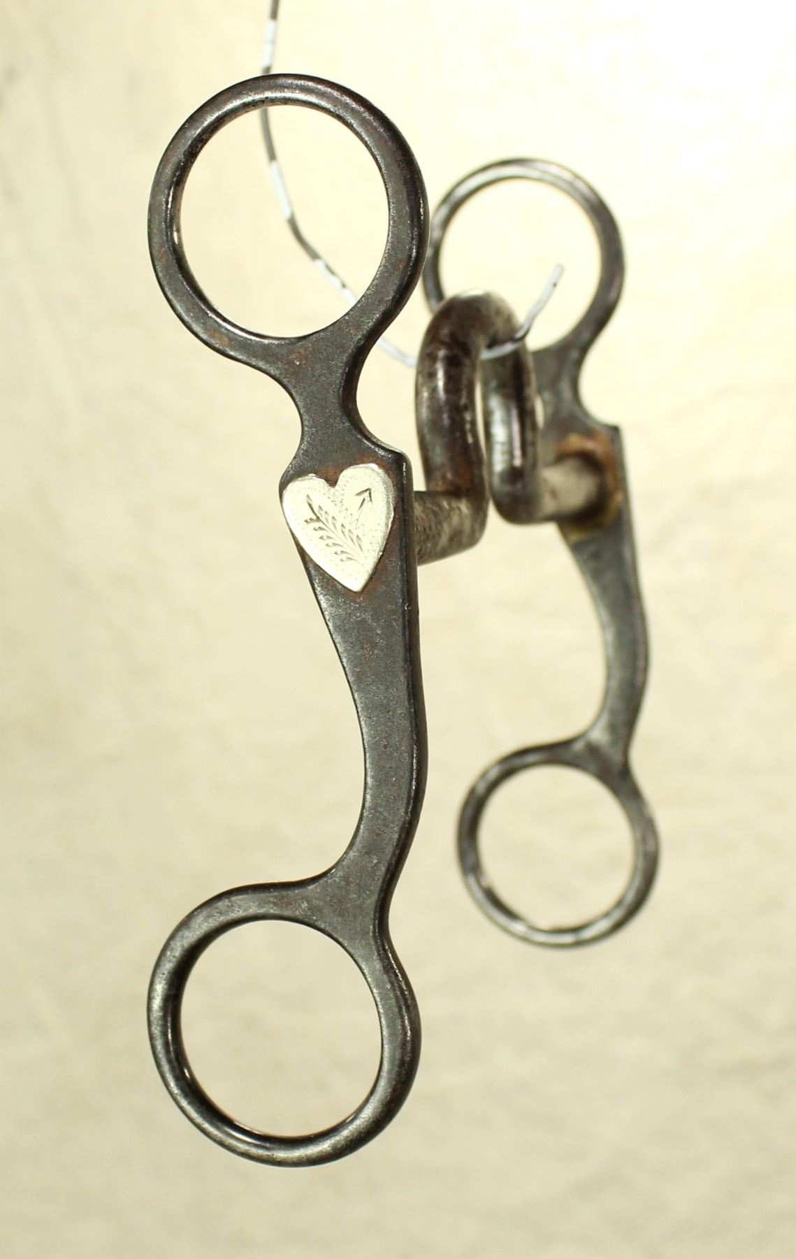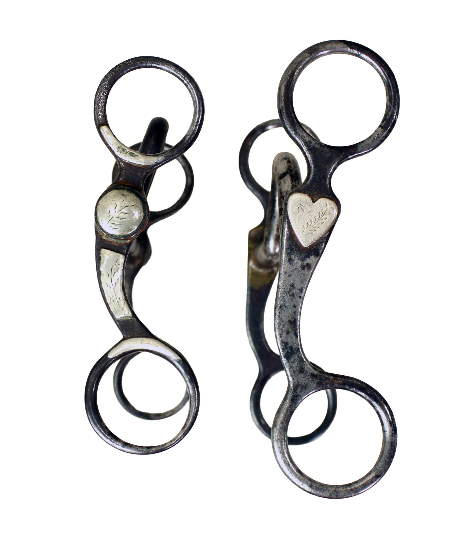Two extra nice iron grazing bits; 1) A well makred K&C bit with heart pattern. 2) A McChesney silver mounted bit with an exceptional tall mouthpeice.