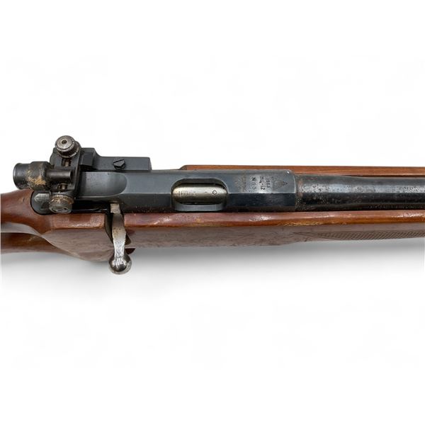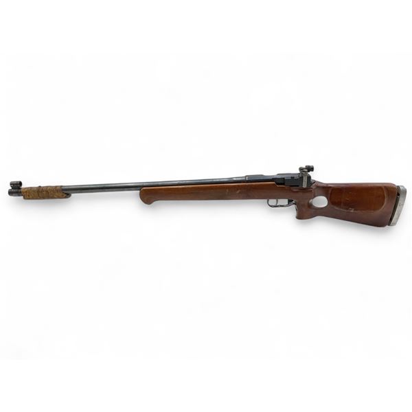 Russian Tula MU-12 Single Shot Olympic Rifle .22LR 29' Heavy Barrel Wood Thumbhole Stock. Target front sight; adjustable rear peep sight. Extra weight taped to end of barrel. Double set triggers; second trigger is VERY light. This is a non-restricted firearm.