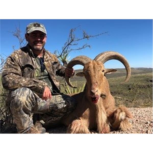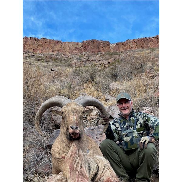 Journey to the rugged beauty of West Texas for a once-in-a-lifetime aoudad hunt for one hunter and one non-hunting guest at the breathtaking El Cielo Ranch, nestled on the Escondido Rim between Alpine and Marfa.