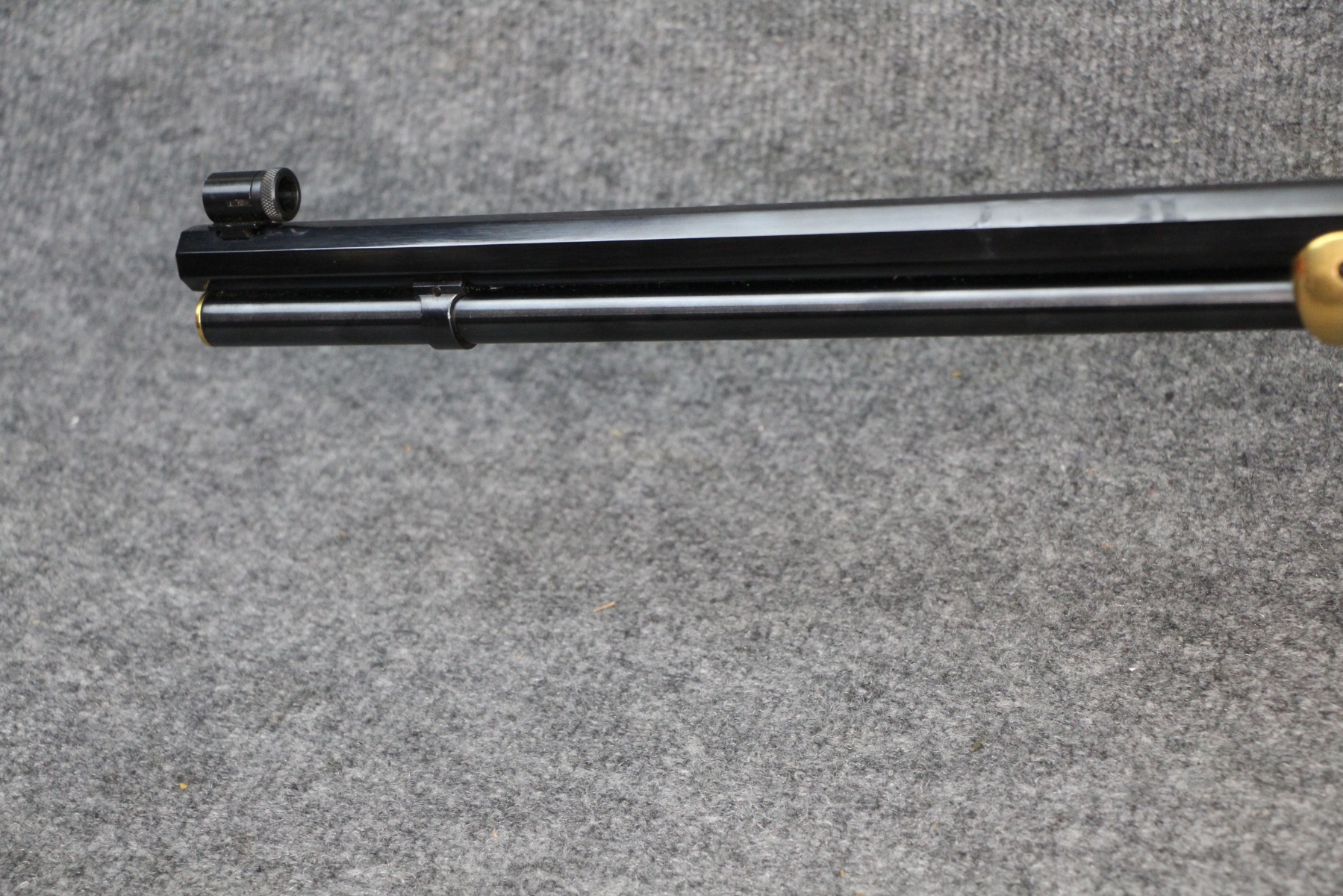 No marks on this gun. The rear buckhorn sight was replaced with a Marbles flip up tang peep sight. Front aperture sight. Octagonal barrel.