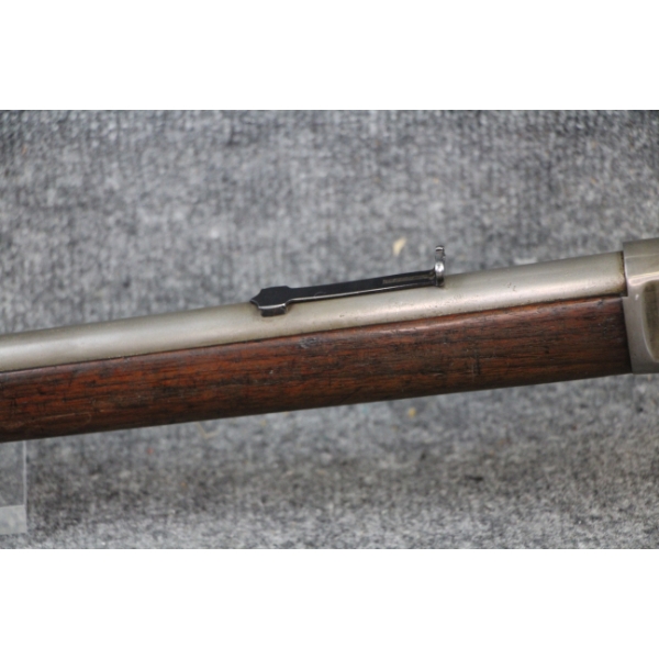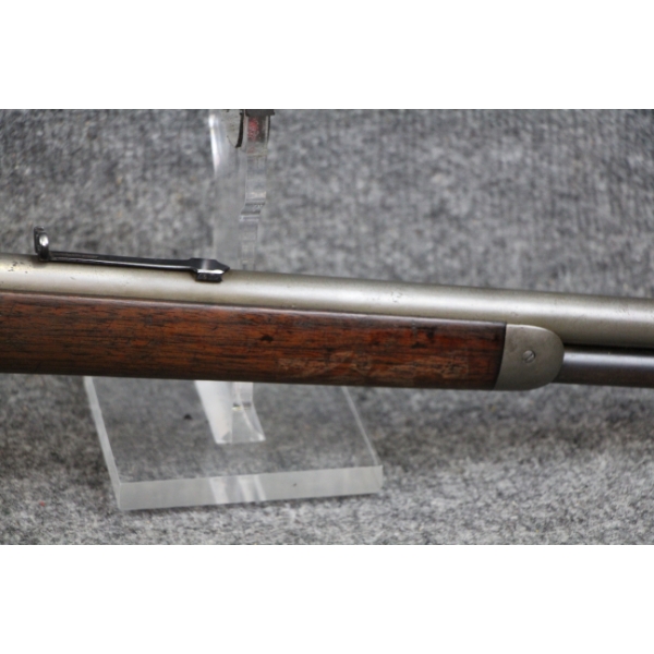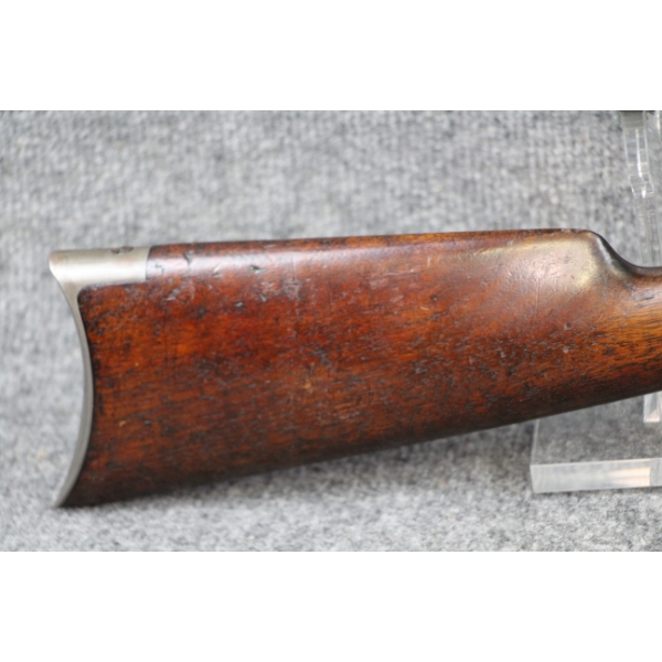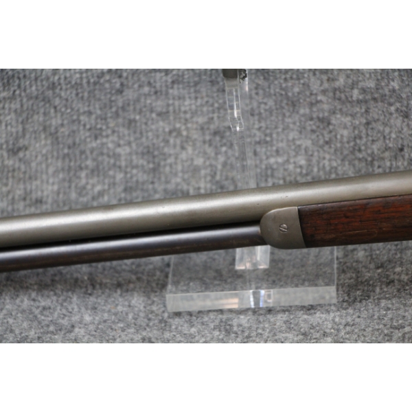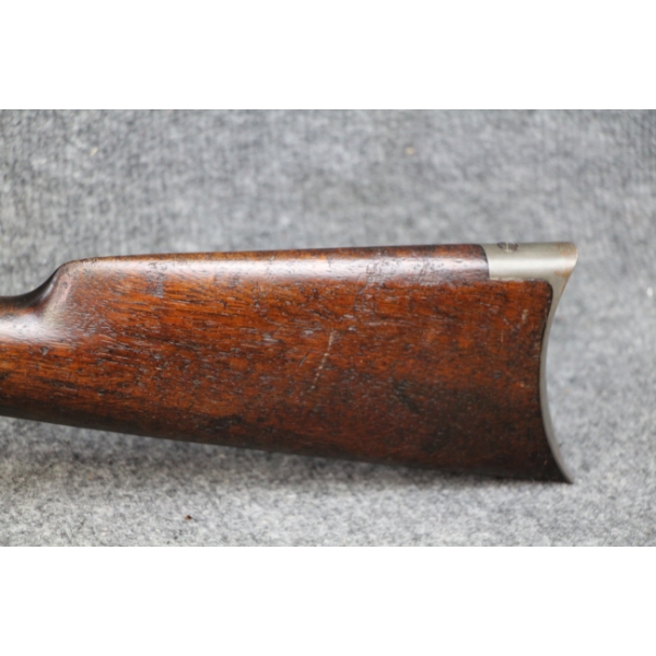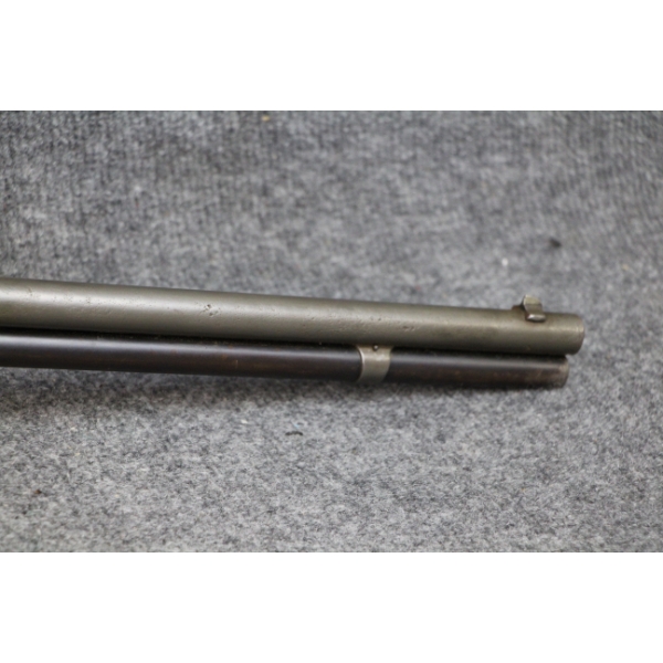1st year of production. Blueing nearly all gone. Some shallow metal scratches. No rust. Rear sight ramp missing. No dents in the tube. No cracks in the stock.