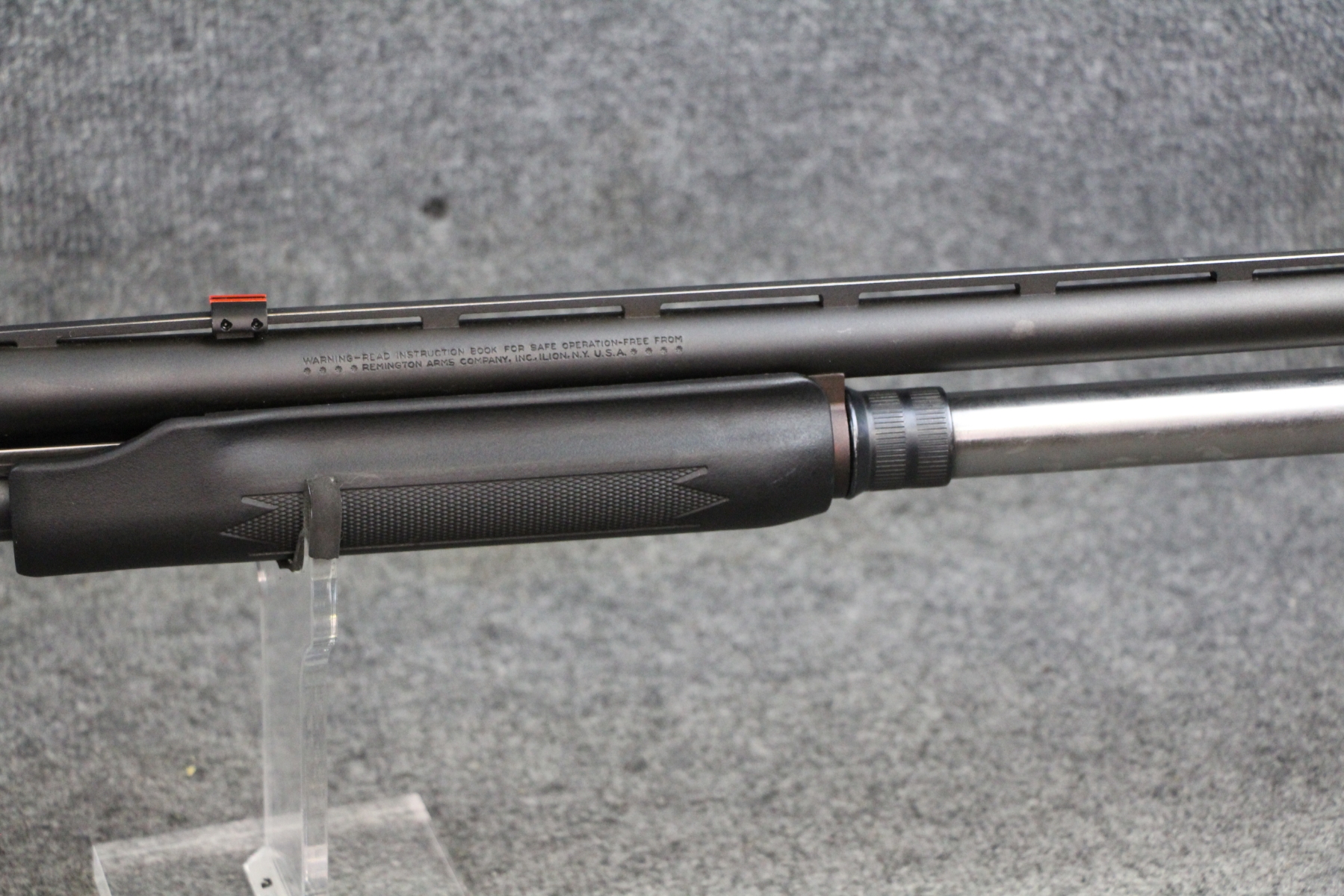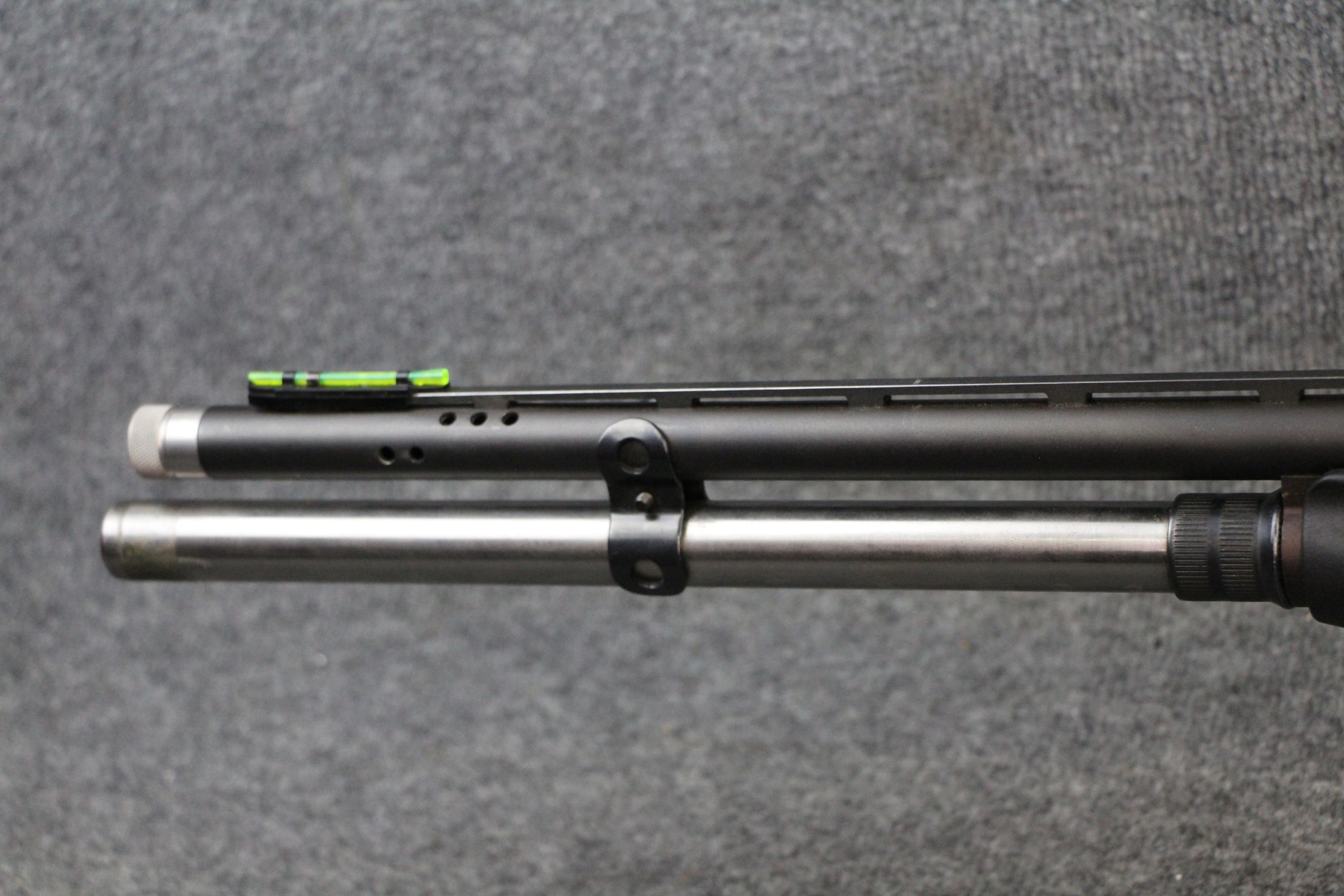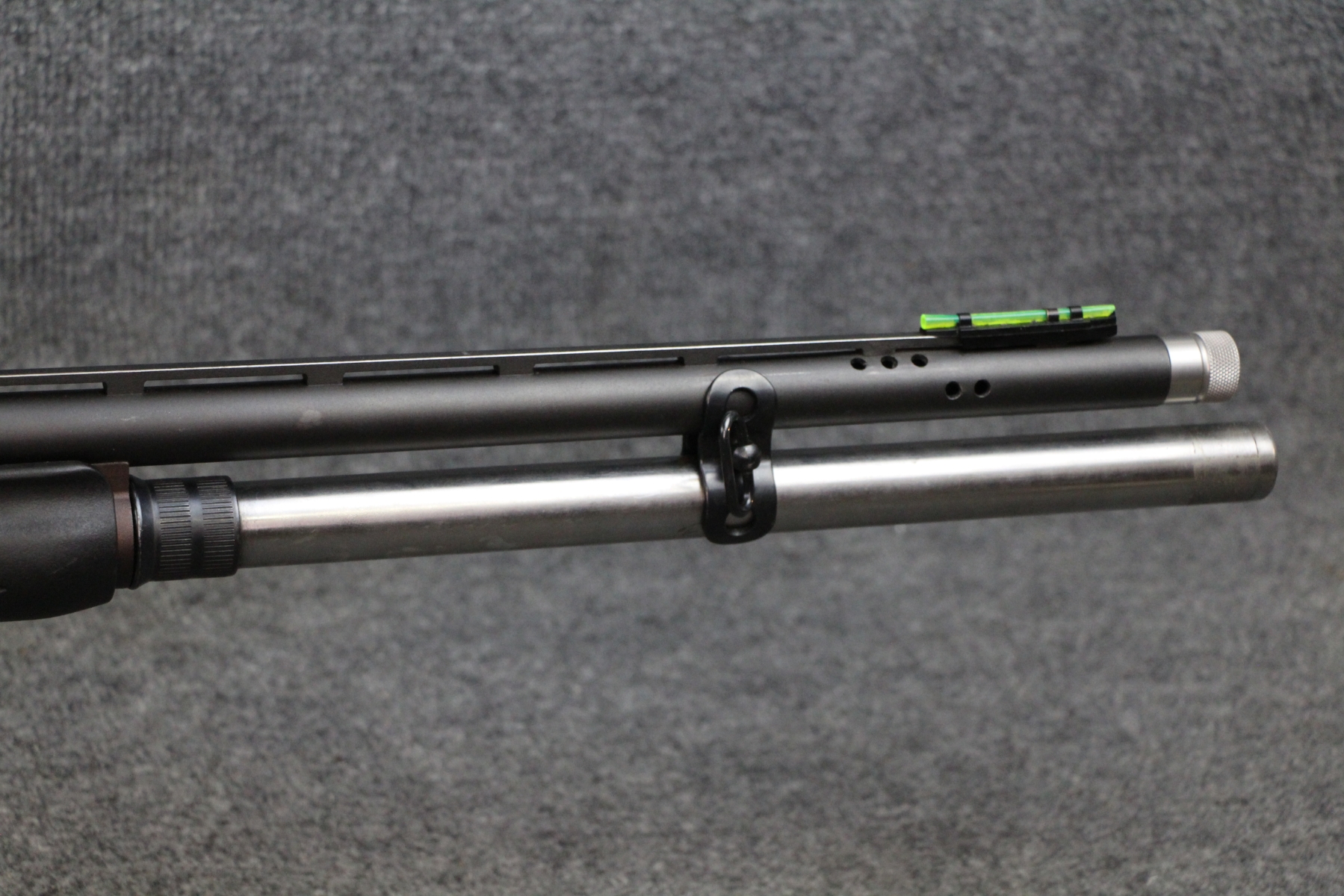 A few minor scratches on the receiver. Extended mag tube. Removable chokes. Turkey choke in there now. Fiber optic sights. Ported barrel.