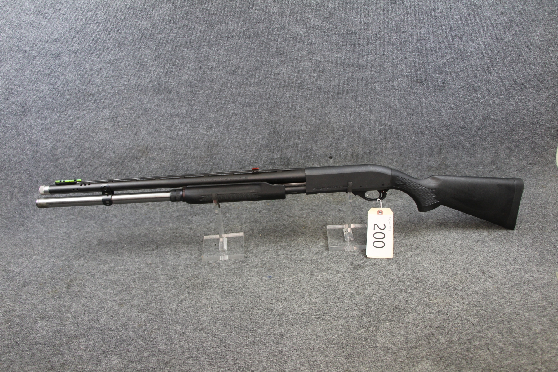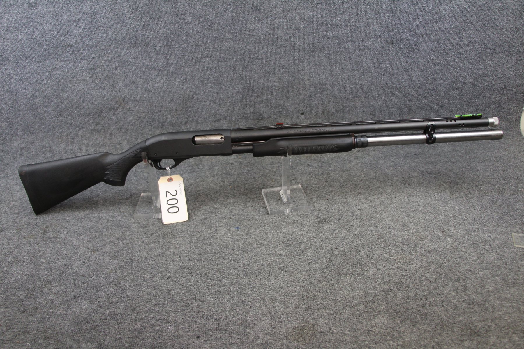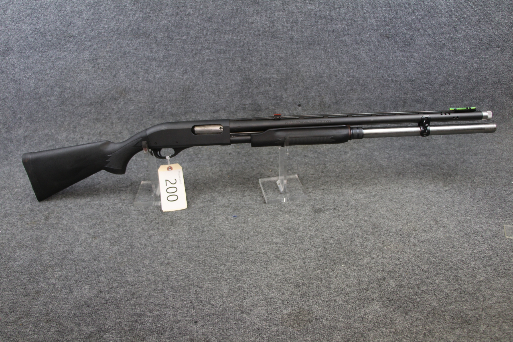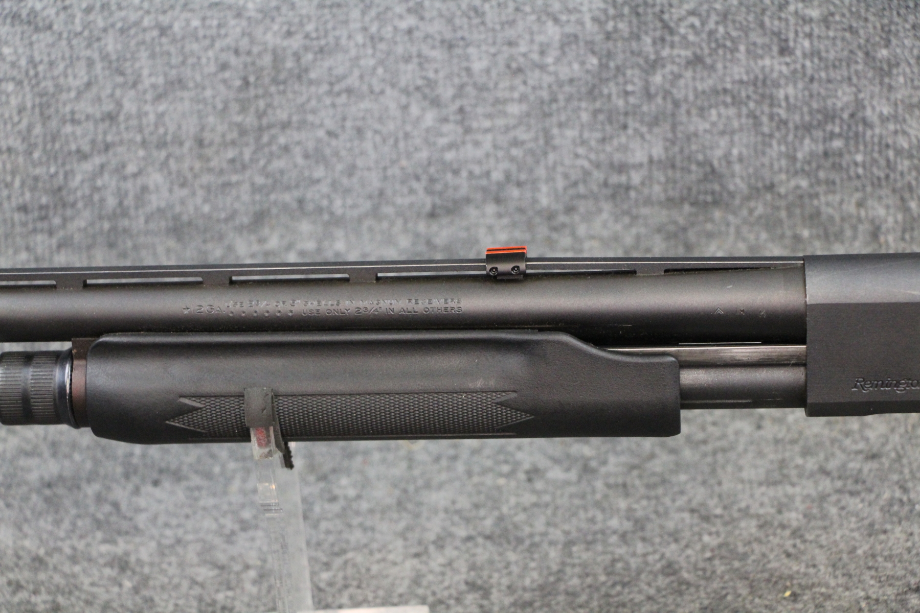 A few minor scratches on the receiver. Extended mag tube. Removable chokes. Turkey choke in there now. Fiber optic sights. Ported barrel.