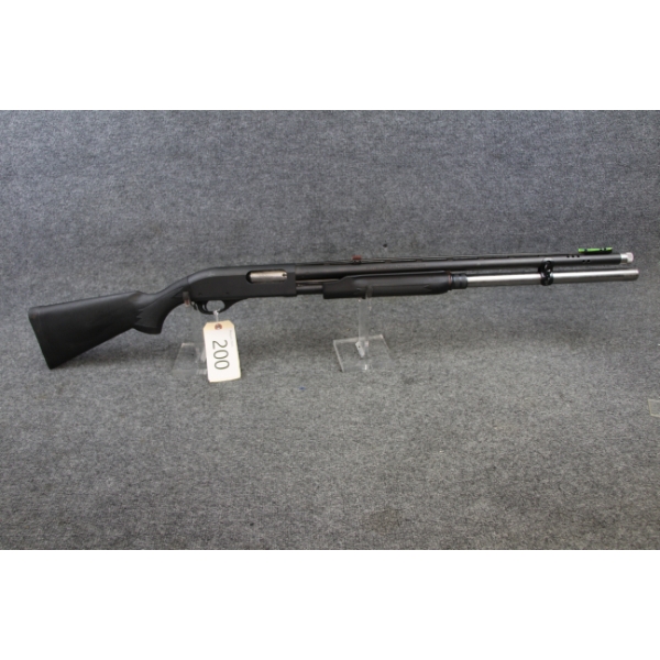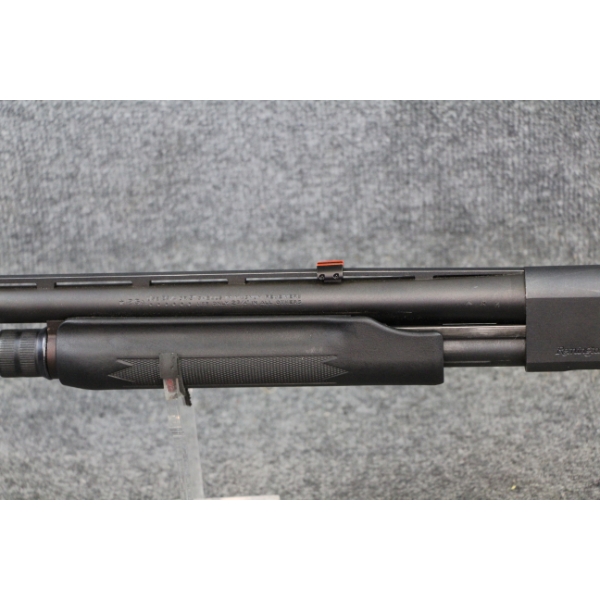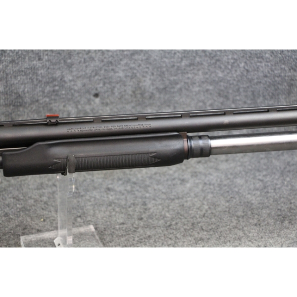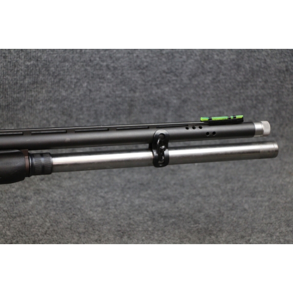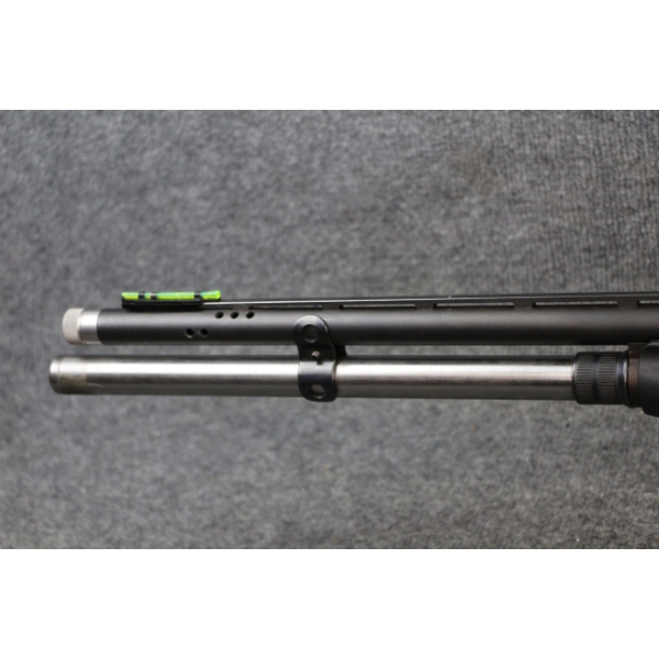 A few minor scratches on the receiver. Extended mag tube. Removable chokes. Turkey choke in there now. Fiber optic sights. Ported barrel.