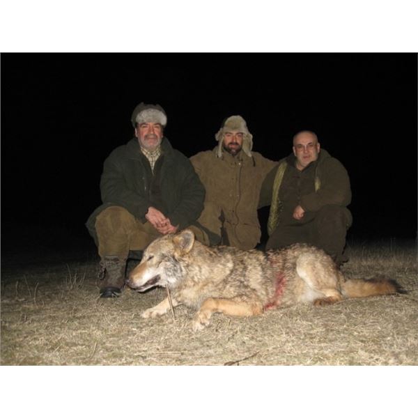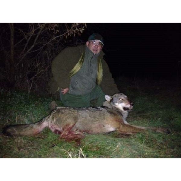 This hunt is done at night from blinds and hunters normally have 1 or 2 good chances to shoot a wolf during the 3 to 4 hunting nights.