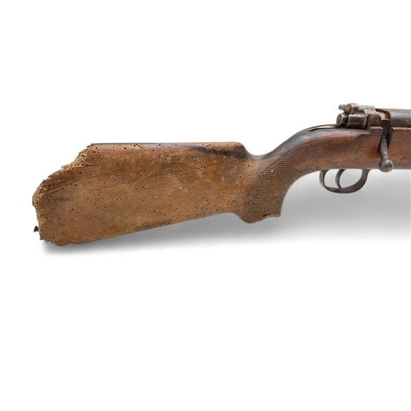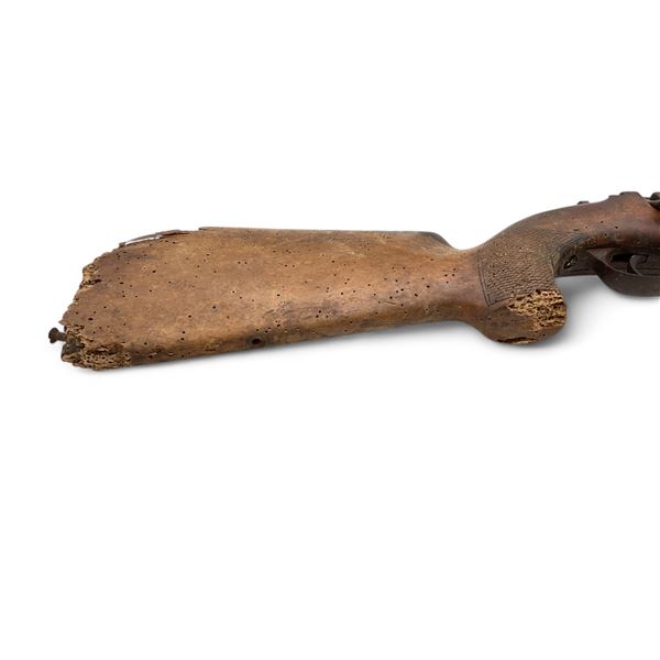 Zastava M56 Trainer Single Shot Rifle .22LR 24" Barrel Broken Wood Stock. Fixed front sight, adjustable rear sight. Rust present through out firearm. Rear stock broken and missing entire section; appears to be disintegrating. This is a non-restricted firearm.