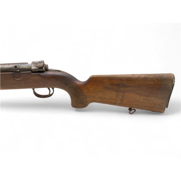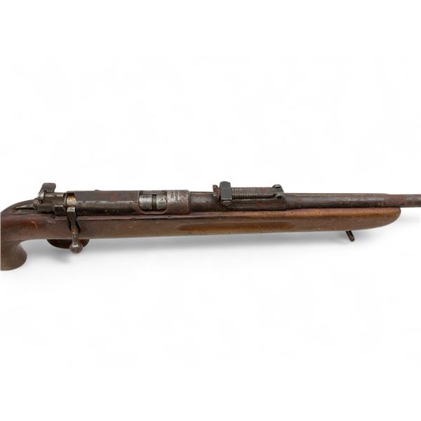 Zastava M56 Trainer Single Shot Rifle .22LR 24" Barrel Wood Stock. Fixed front sight, adjustable rear sight. Rust present through out firearm. Trigger and safety do not operate. Rear stock cracked at rear and butt plate broke at bottom. Wood appears to be disintegrating. This is a non-restricted firearm.