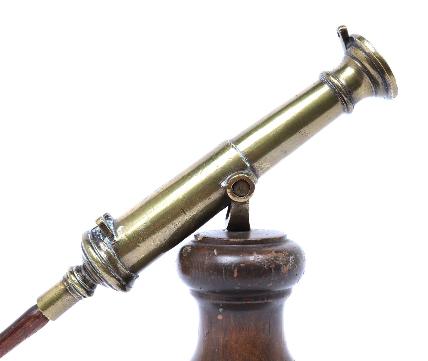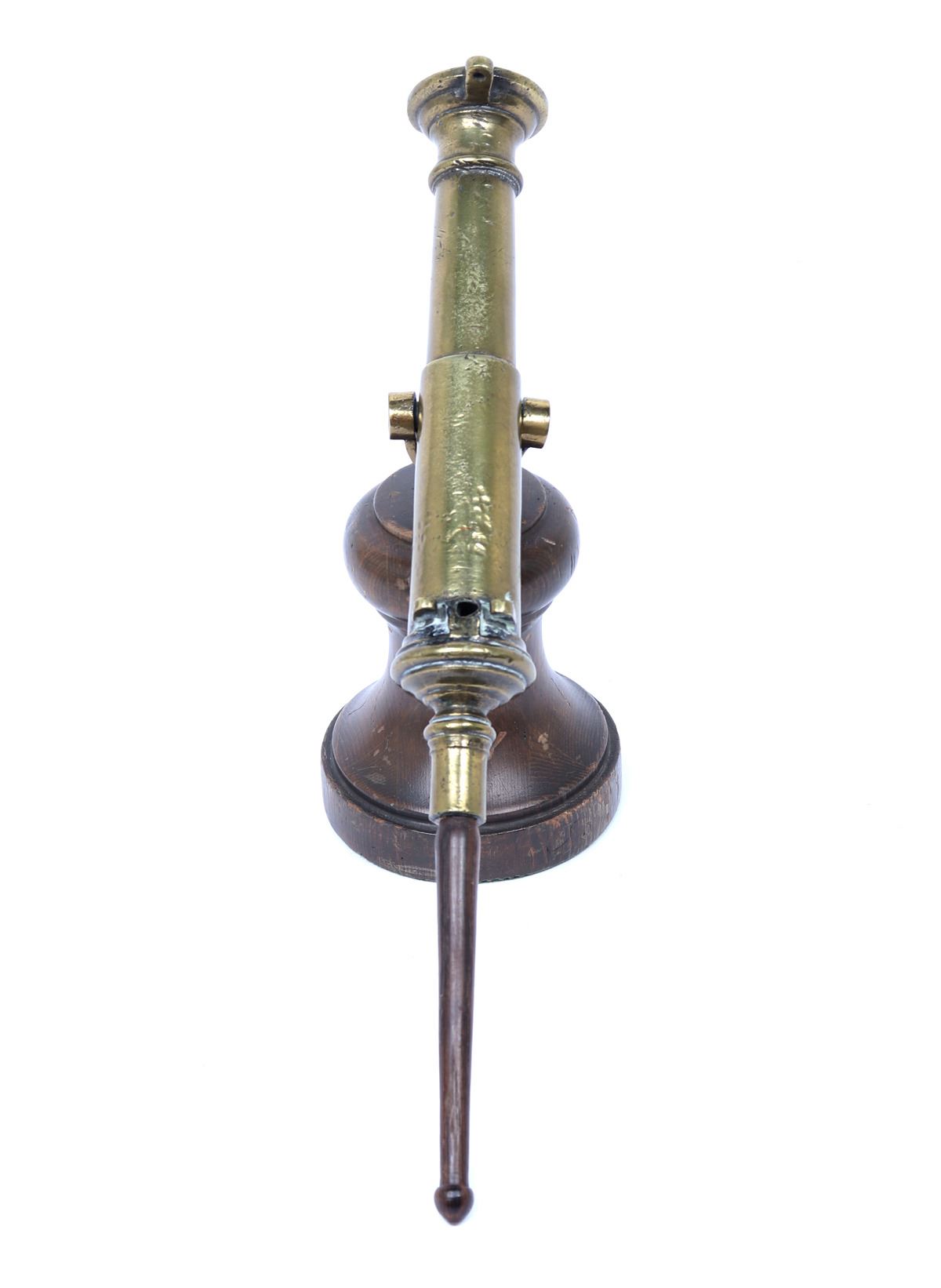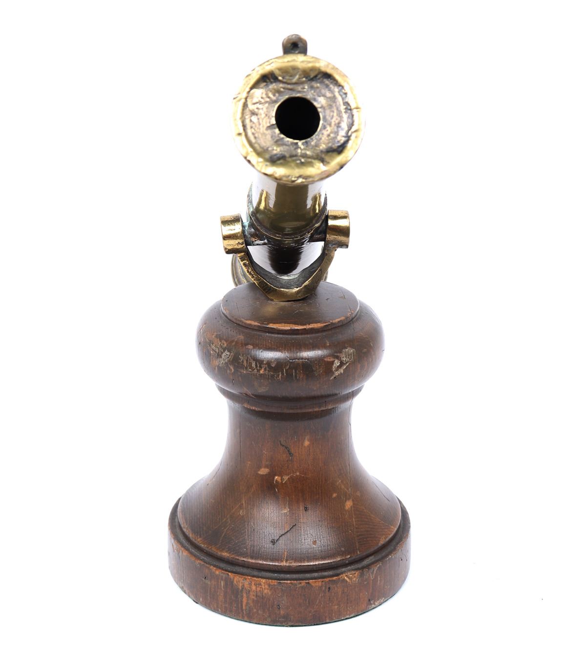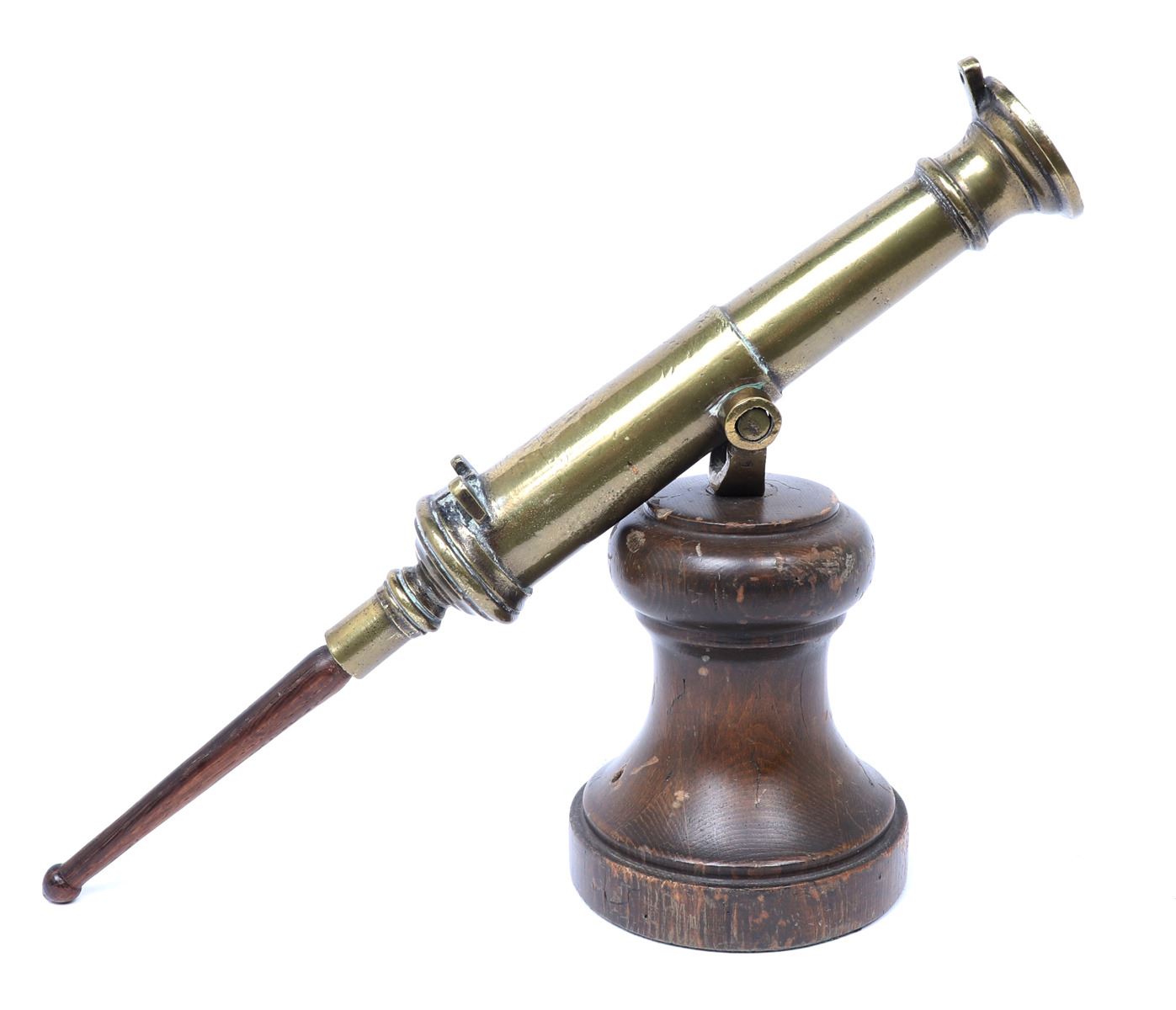 Iberian Peninsula, Spanish fleets 17th-18th century. Fine Spanish bronze swivel cannon mounted on a later turned wood base. The cannon with an added wood knob to the rear for adjustment and direction. Size cannon 16 1/2" L. Provenance: Los Angeles Collection, San Diego Collection Prior