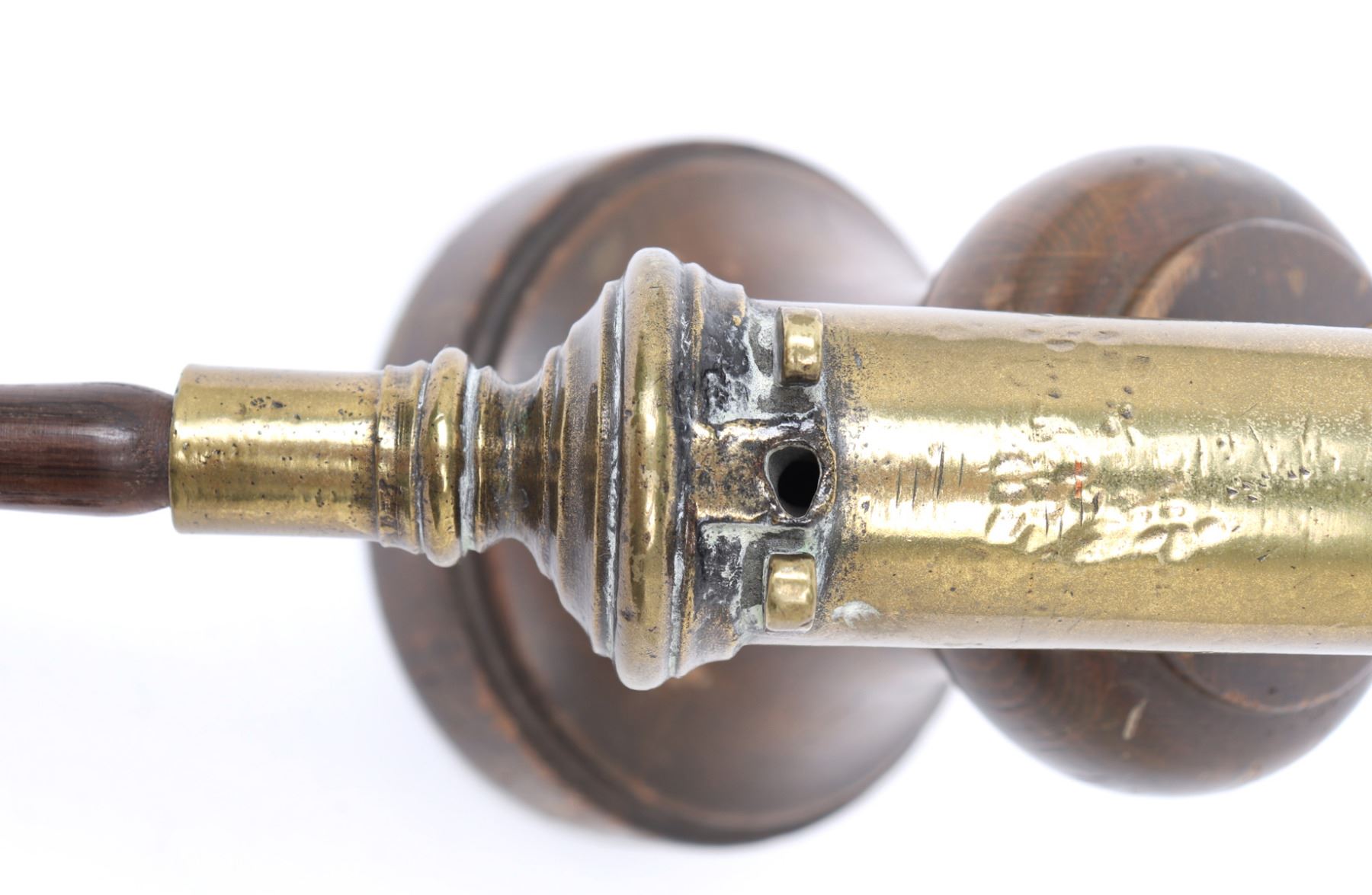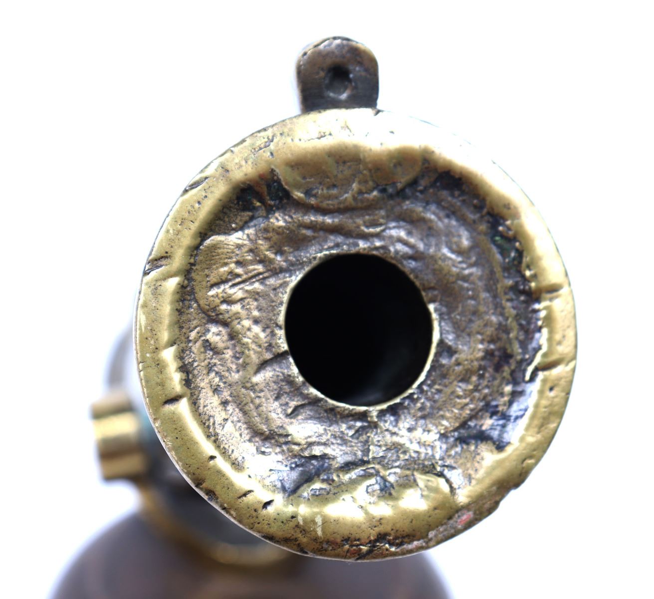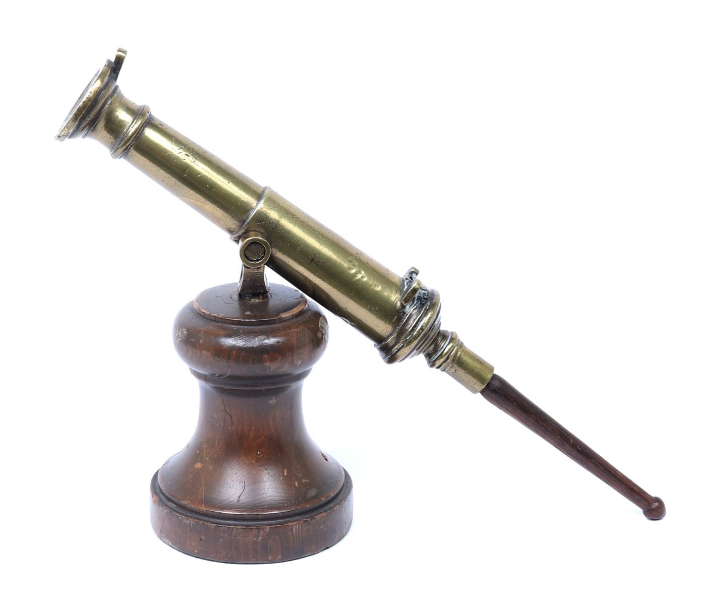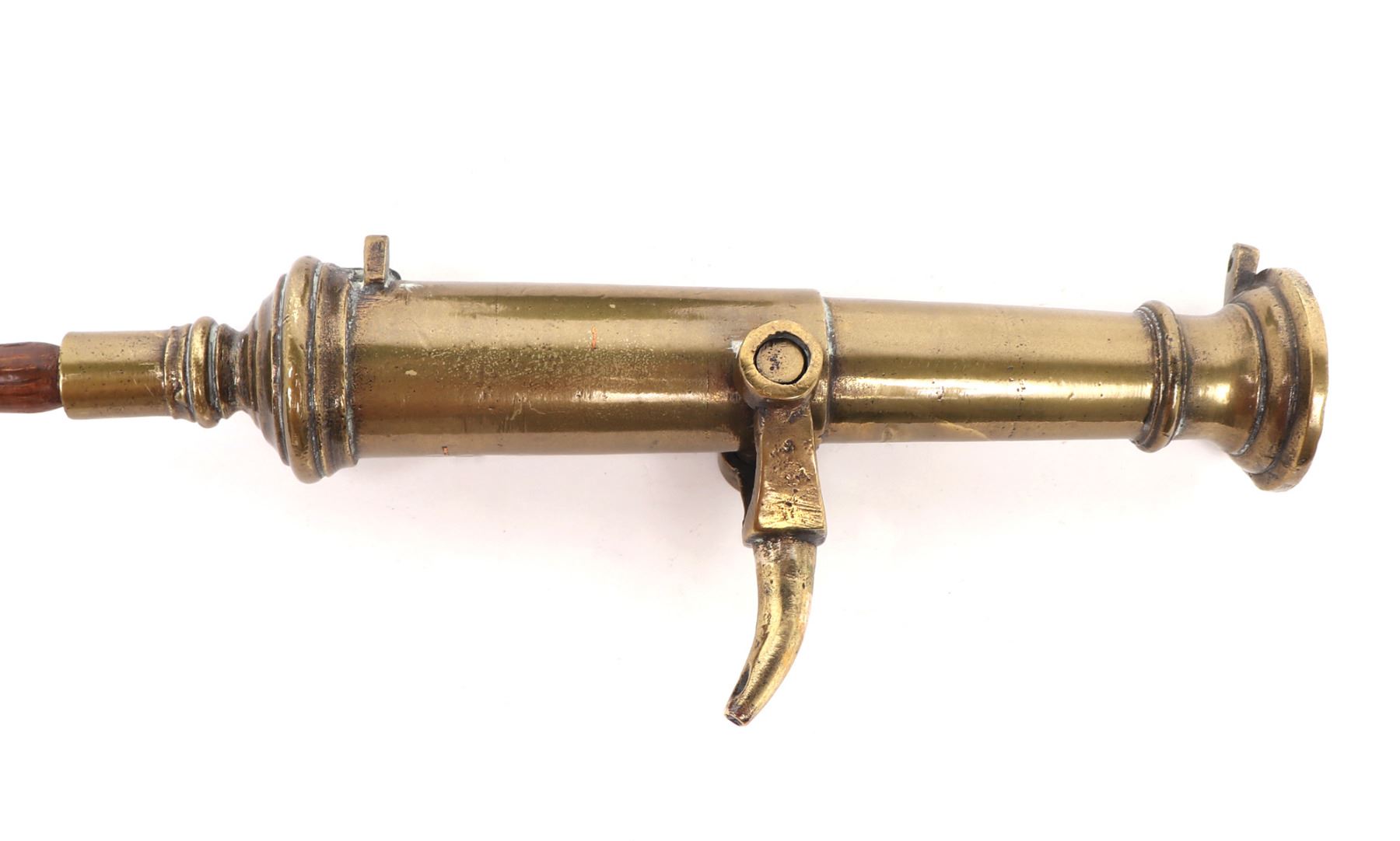 Iberian Peninsula, Spanish fleets 17th-18th century. Fine Spanish bronze swivel cannon mounted on a later turned wood base. The cannon with an added wood knob to the rear for adjustment and direction. Size cannon 16 1/2" L. Provenance: Los Angeles Collection, San Diego Collection Prior