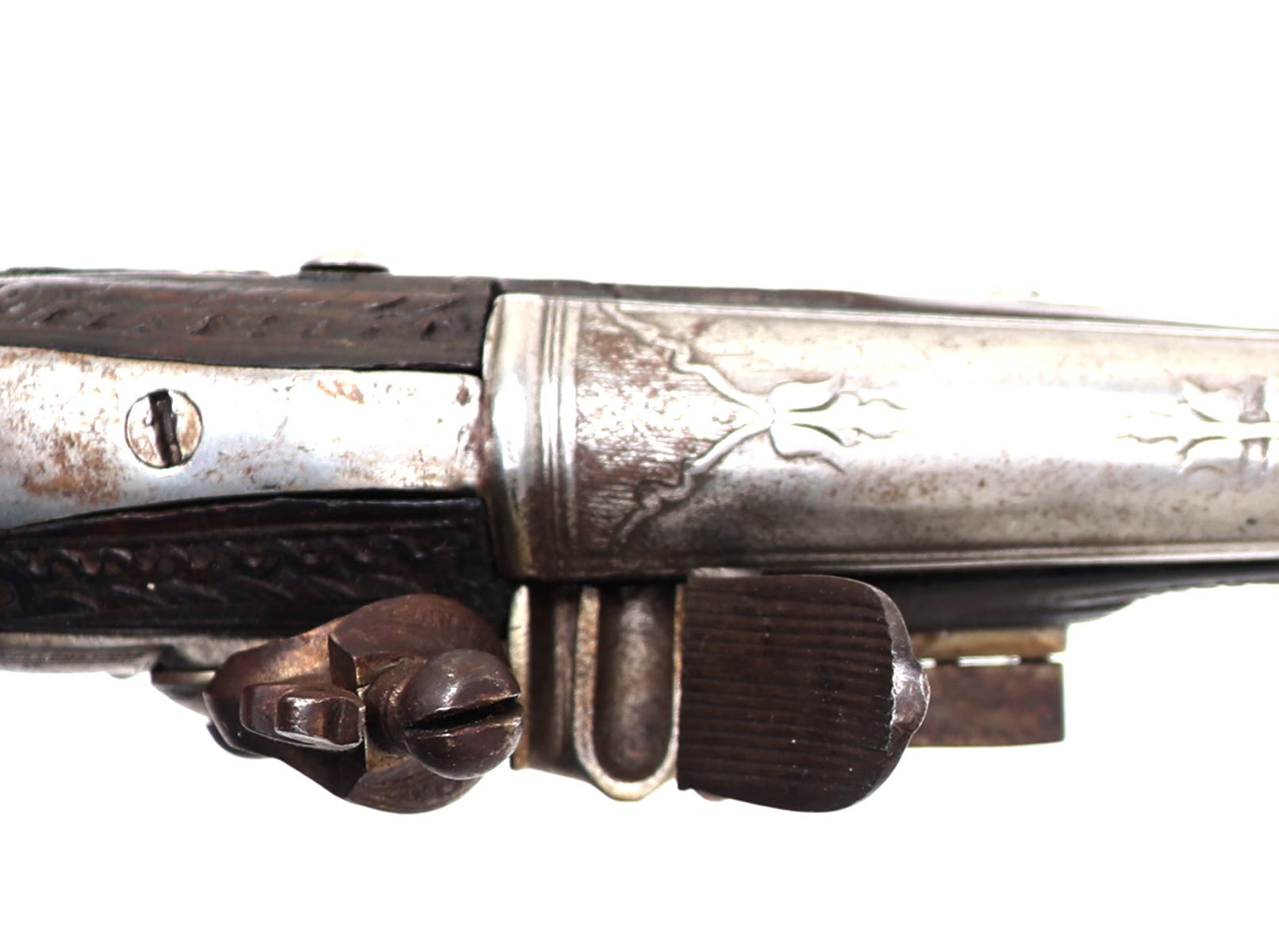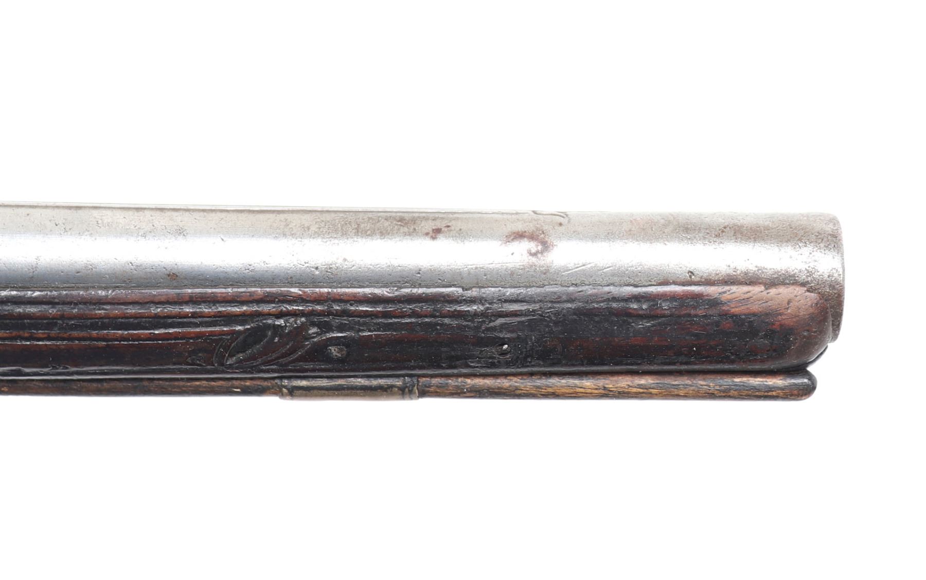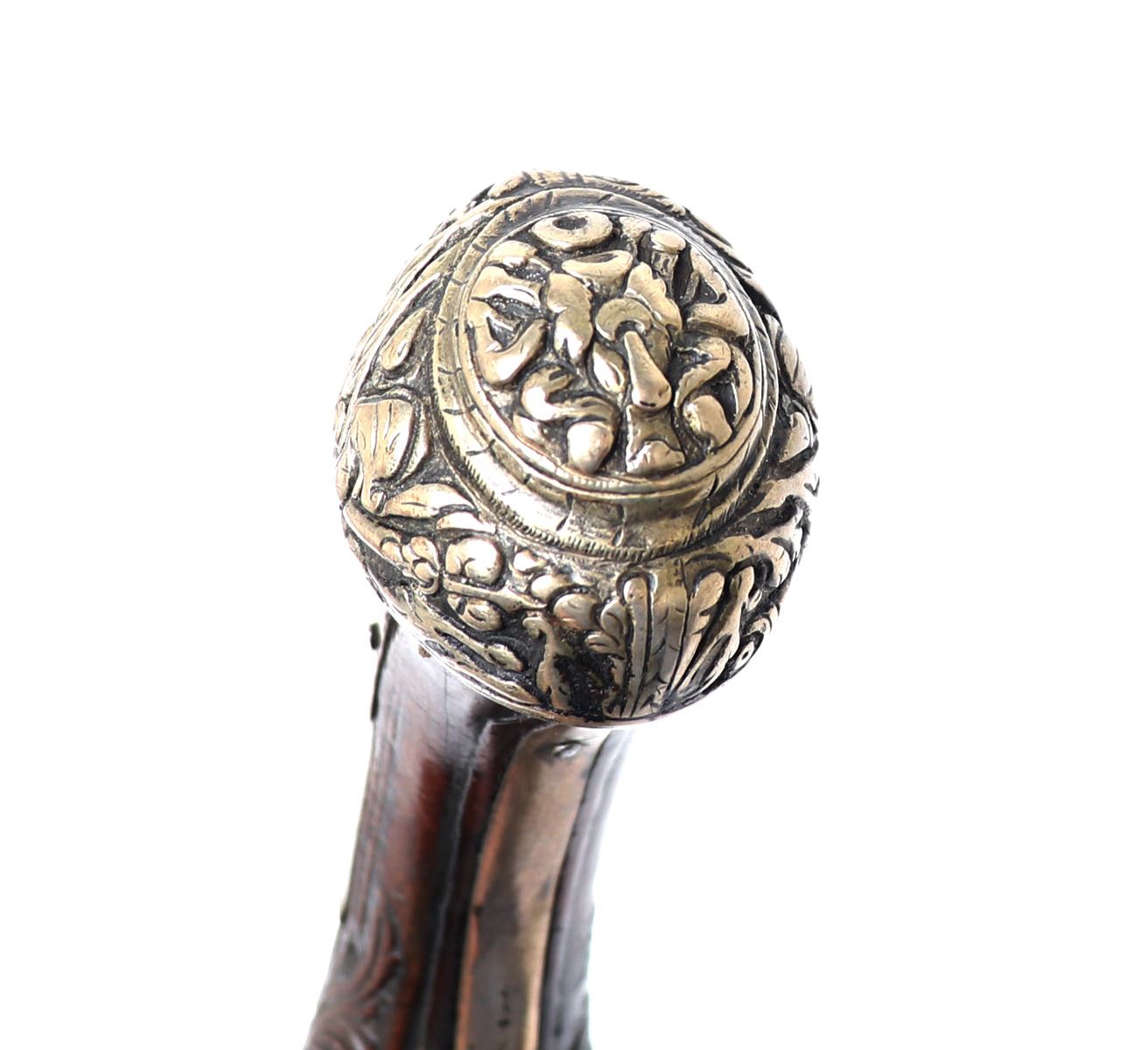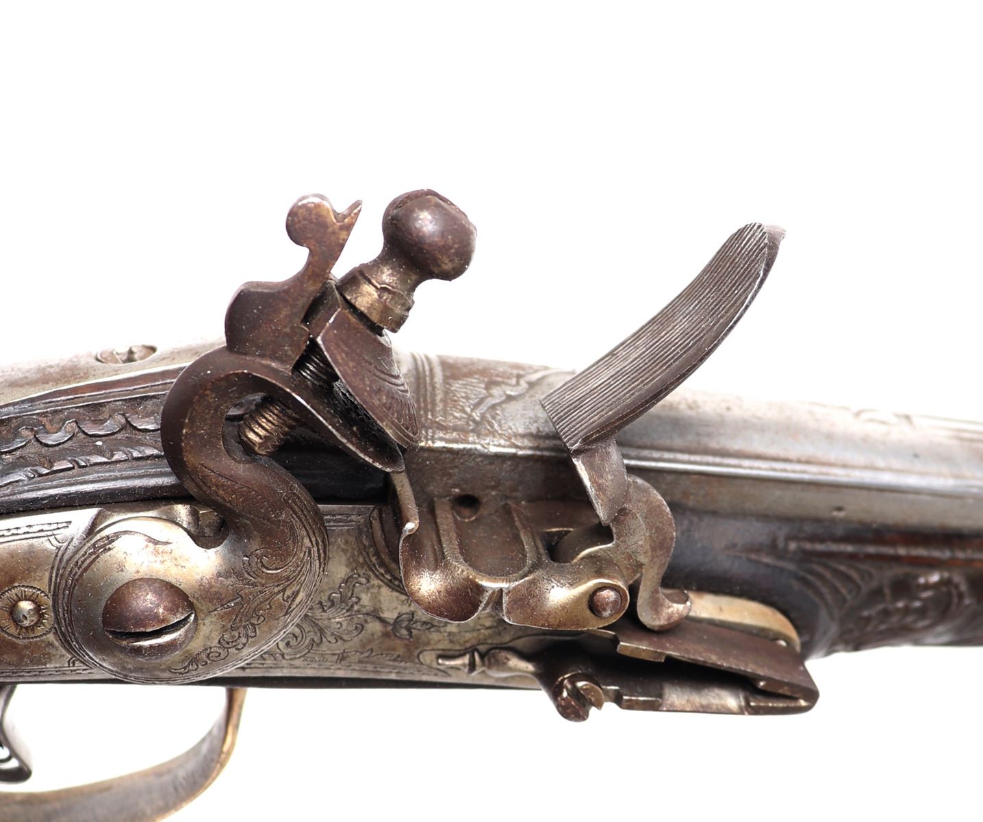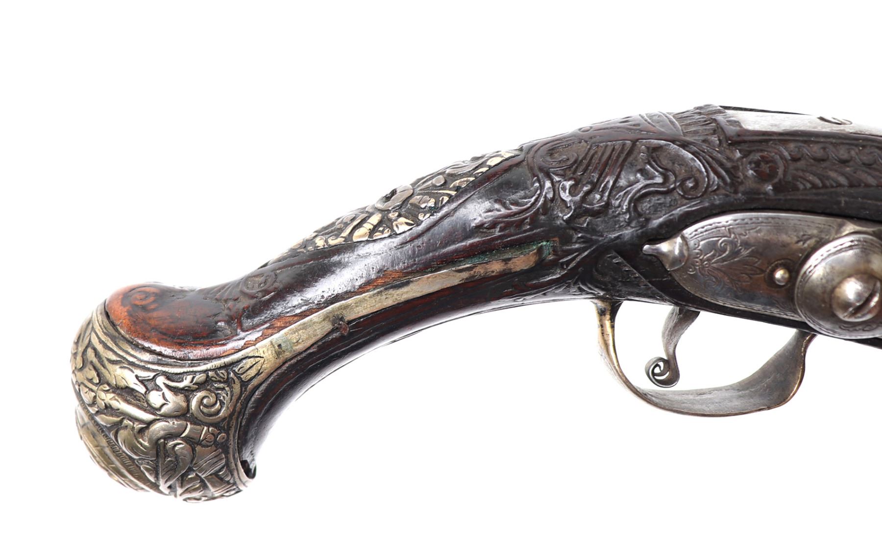 Lot 94 Brace of Ornate Silver & Carved Stock Cavalry Pistols, 18th c.