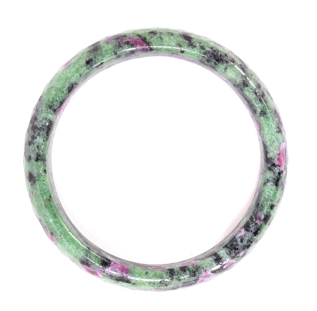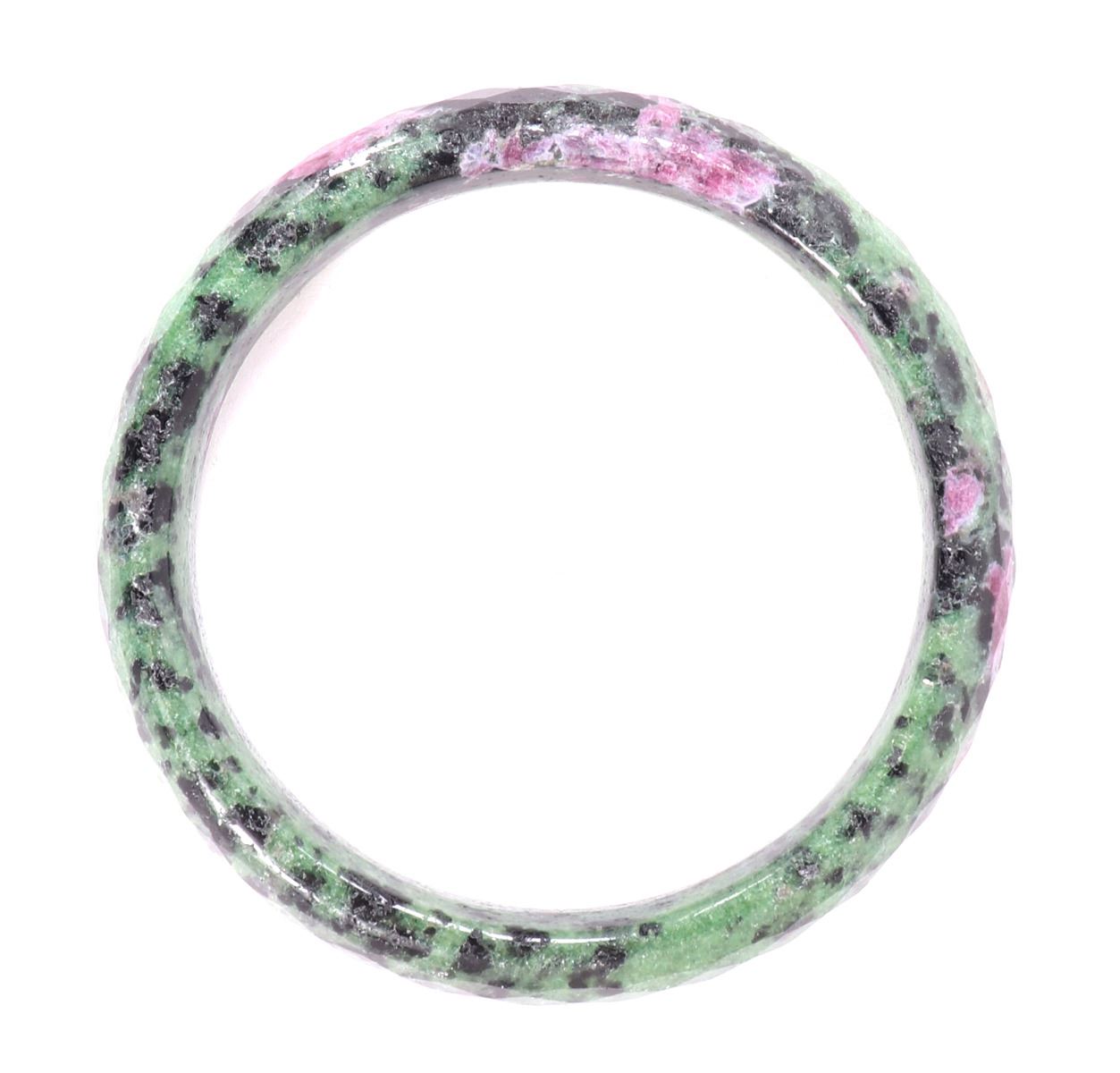 Lovely diamond cut Chinese mottled purple and green jade bangle bracelet. Lovely green color against a deep sea green with wonderful sections of fuchsia purple speckles throughout. Size 2 3/4" OD, 2 1/4" ID, weight 49 g. Condition: Wonderful wearable condition throughout.