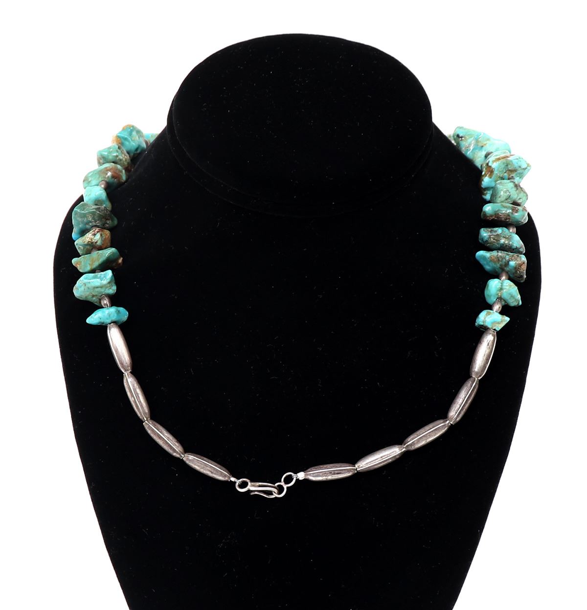 Lot 207 Large Turquoise Native American Necklace with Sterling Silver