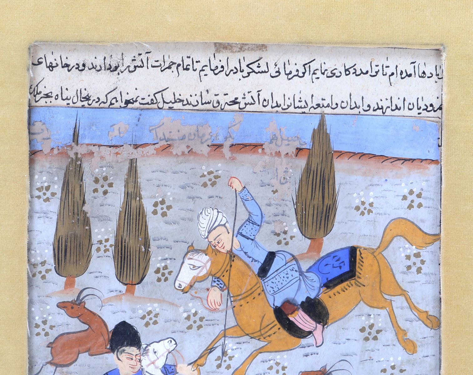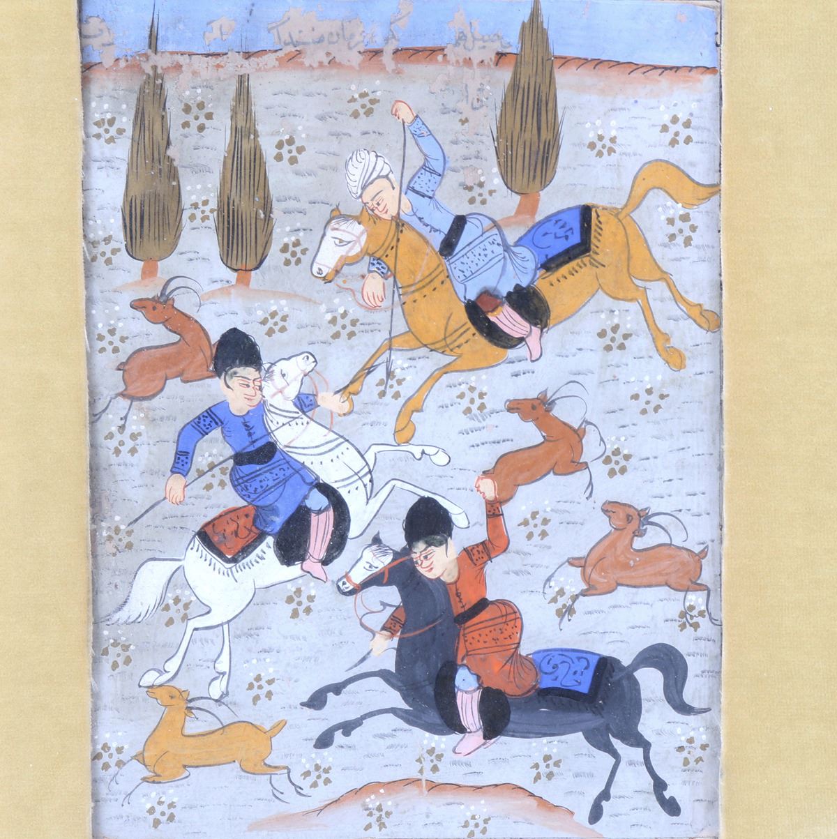 Lot 286 Persian Watercolor Scene of Hunters on Horseback