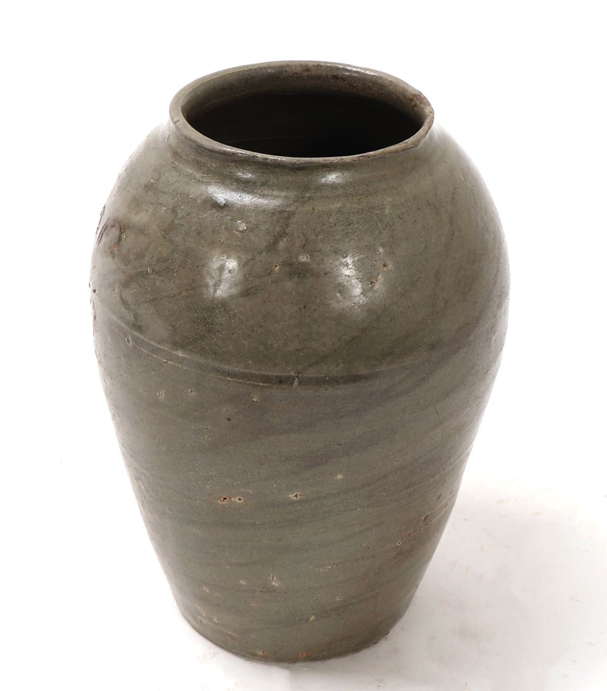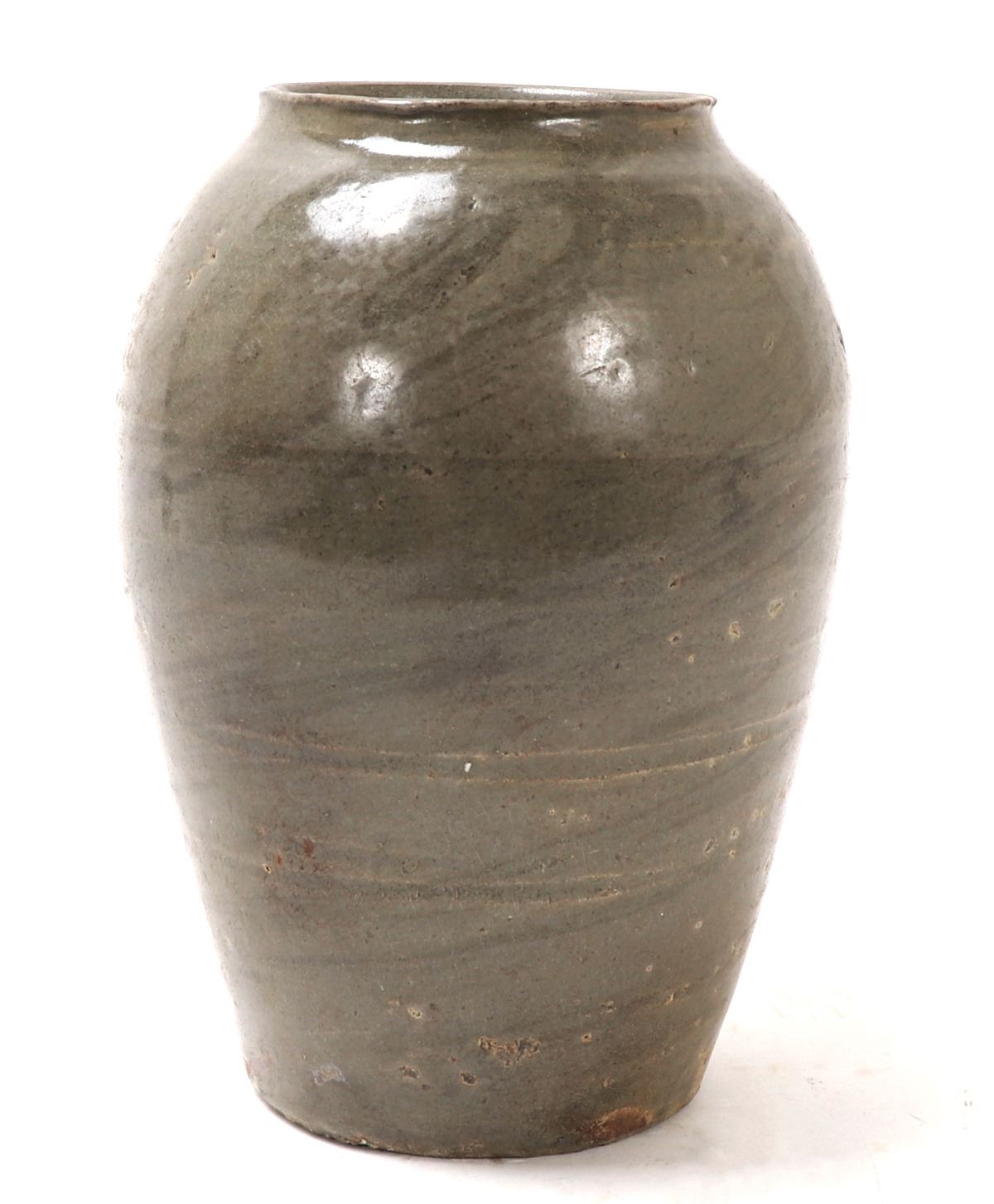 Lot 302 Wonderful Early Korean Ceramic Celadon Incised Jar