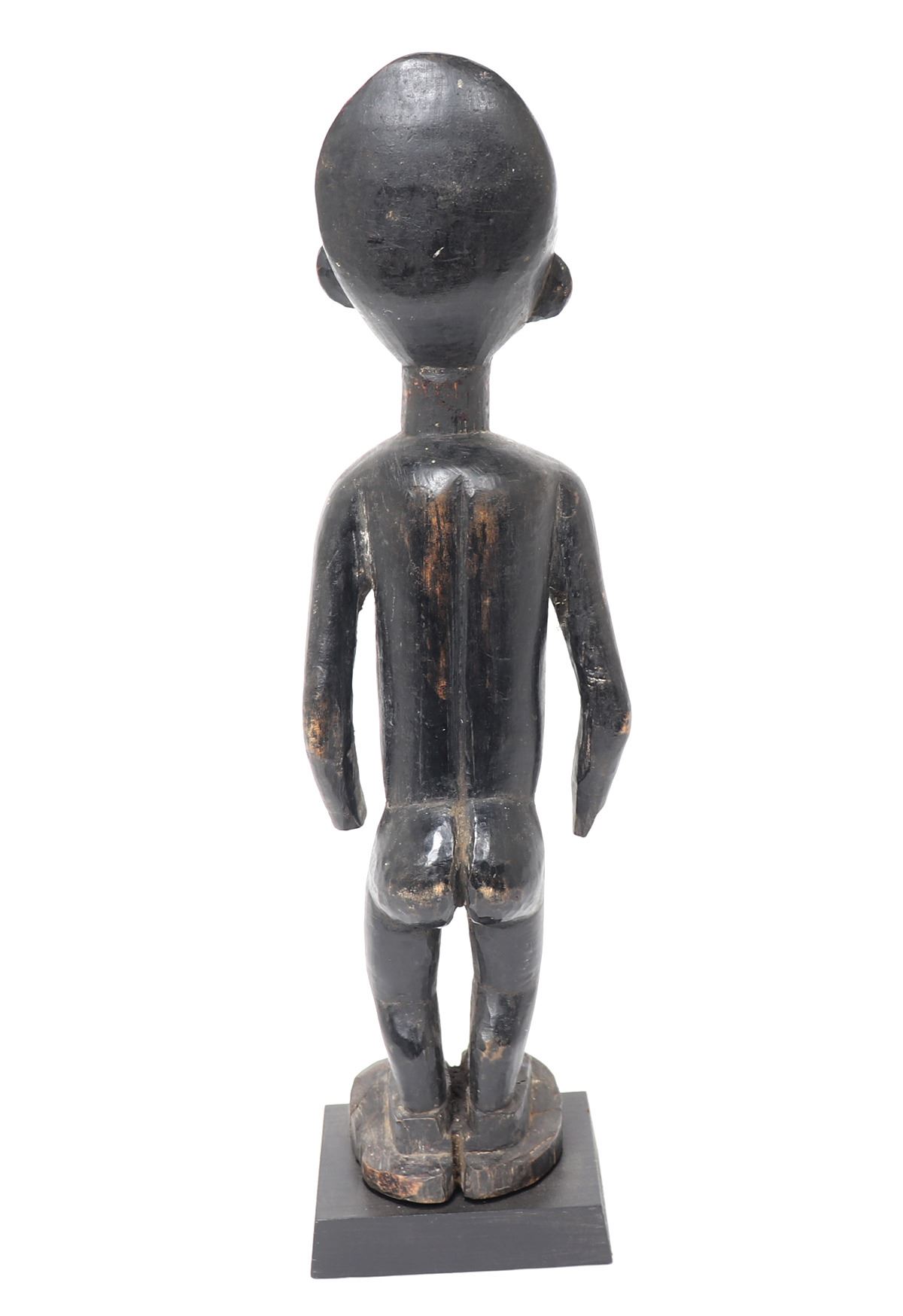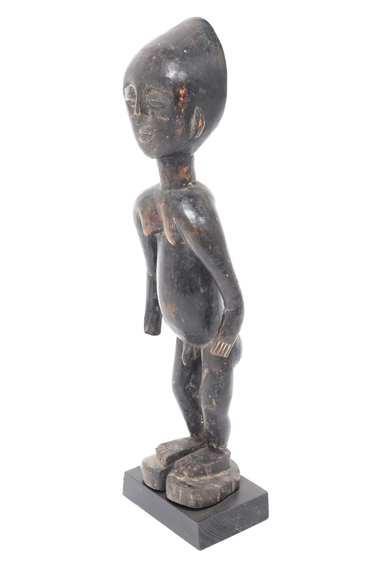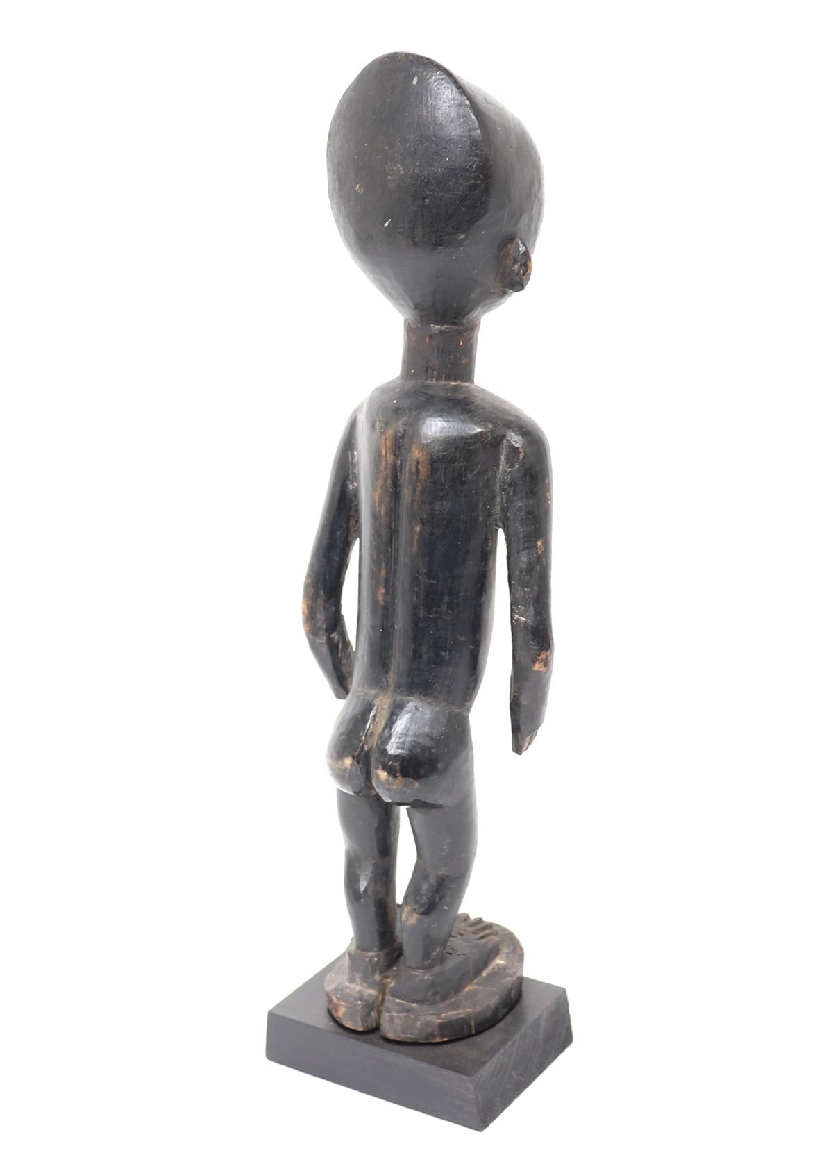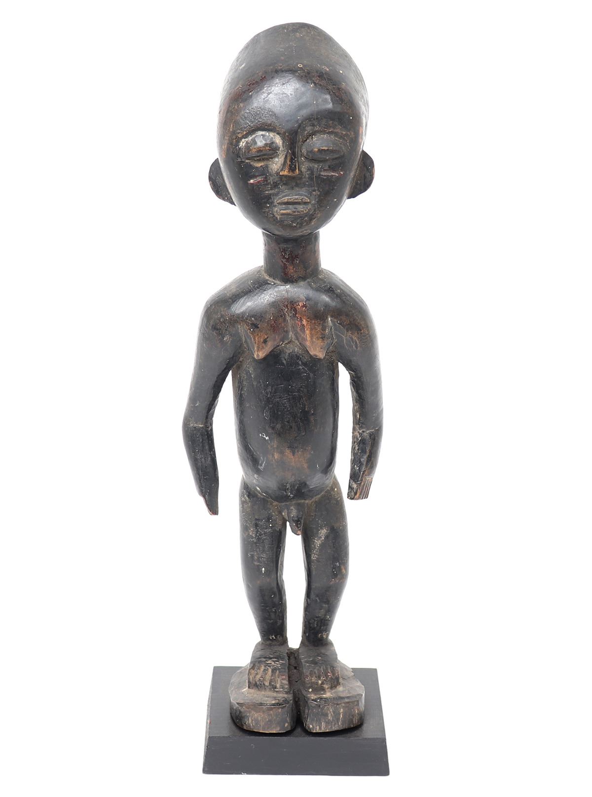 Ivory Coast, Lagoons Region, Ghana male figure on a custom stand. Dark patinated heavy wood carved male figure with slightly bent knees and arms. Size 18 1/2" H on custom stand. Provenance: Ex-California Collection