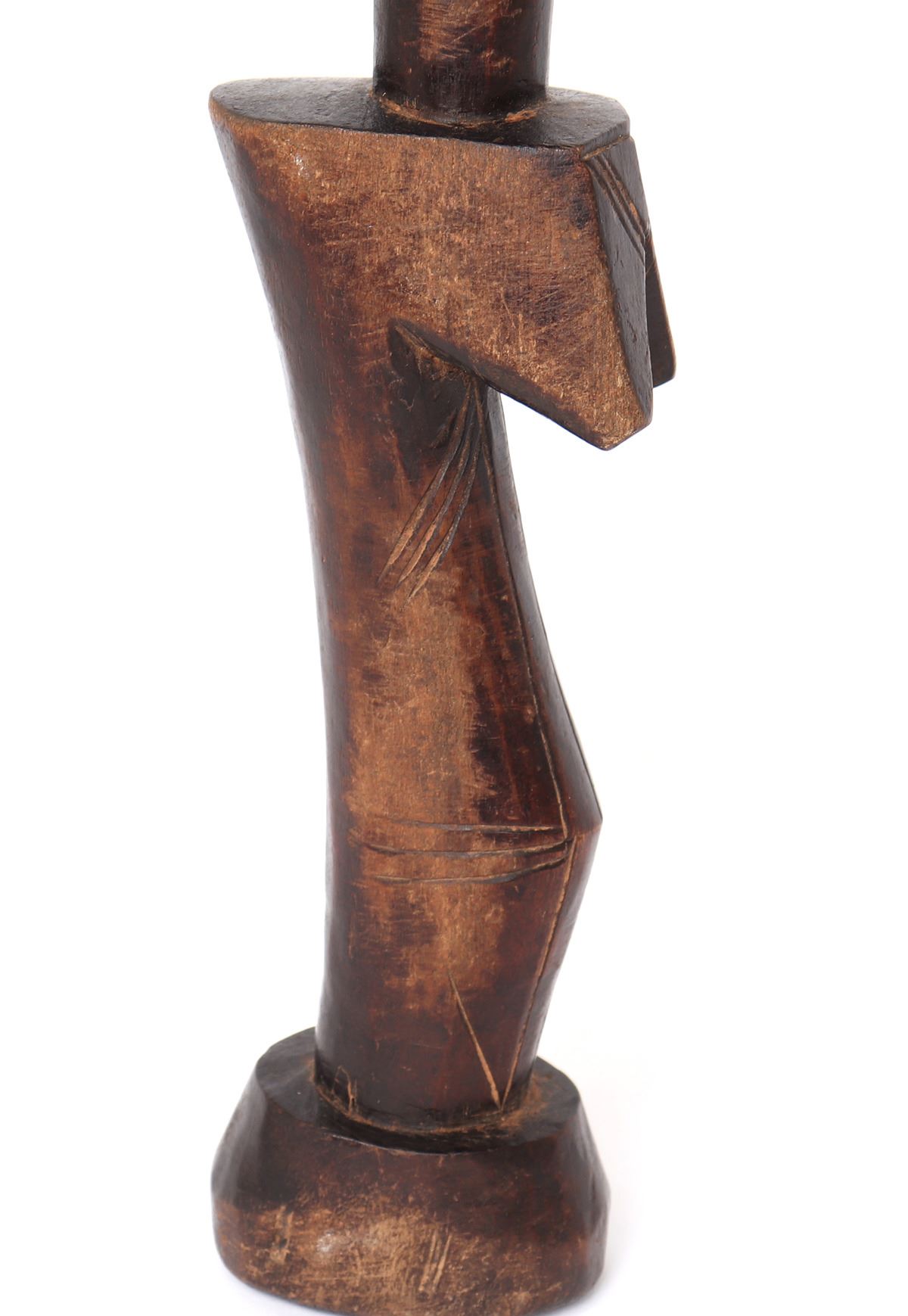Burkina Faso, Mossi peoples fertility dolls collected in 1982 South Africa and reviewed by a member of the Ethnic Arts Council & Charles D. Miller III as having correct patina and wear from handling and use. These dolls were worn on young girls backs with wrappings which create a patina such as this example. Size 14 1/2" H x 4 1/2" W. Provenance: Family collection of an esteemed diplomat and ambassador amassed during travel and work circa 1960-1990s in the medical field providing charitable advanced medical care throughout the African continent and internationally.