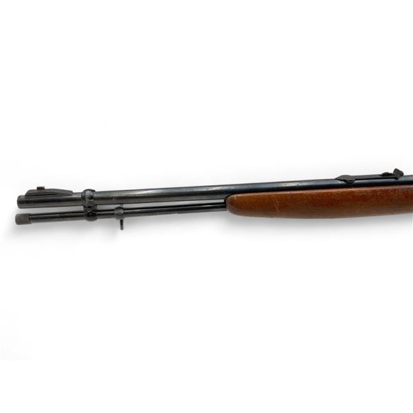 Colt Courier Semi Auto Rifle 22LR 19" Barrel Wood Stock. Tubular magazine; magazine is loose and moves forward easily. Ramp front sight, adjustable rear sight. Rear stock broken and wired together near receiver. This is a non-restricted firearm.