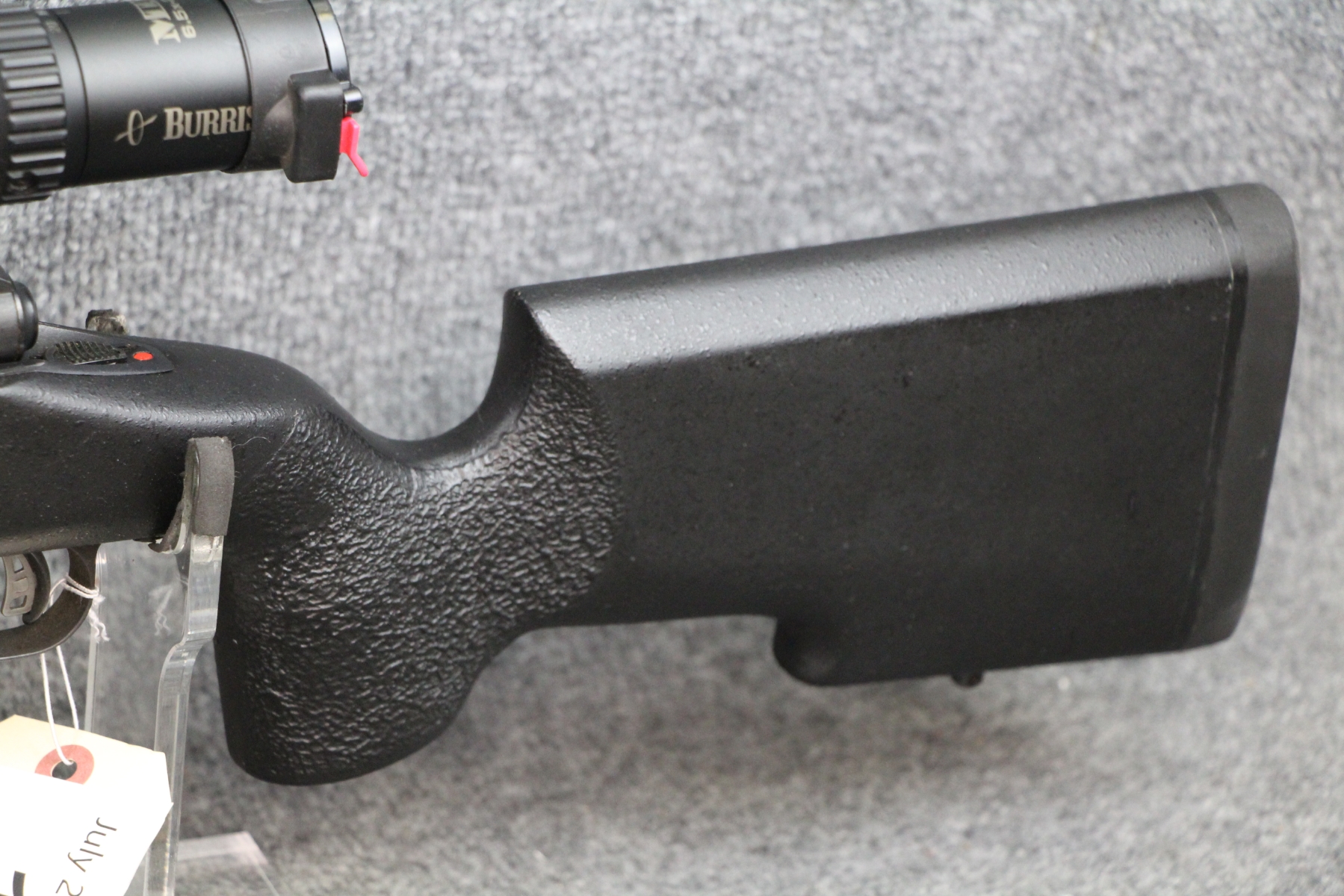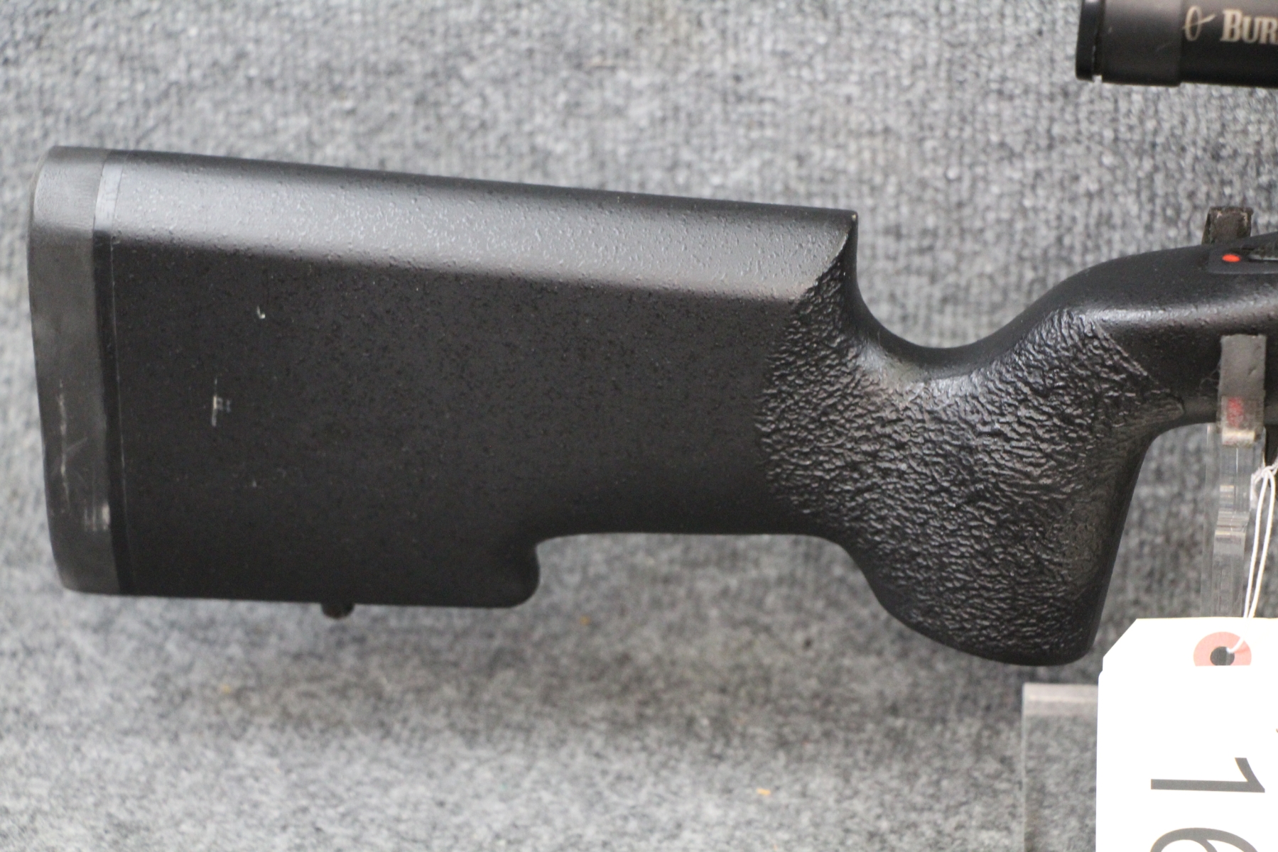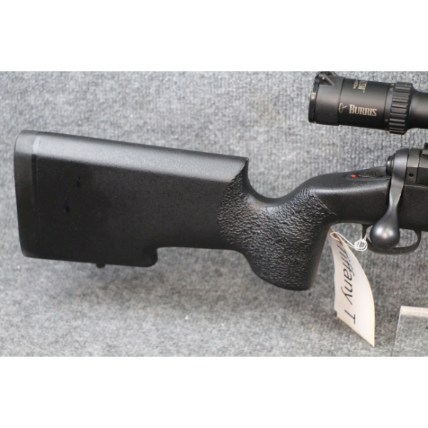 Not a mark on this gun. Floating bull barrel. Matte finish. McMillan stock. Comes with Burris MTAC 6.5x20x scope. Accu-trigger.