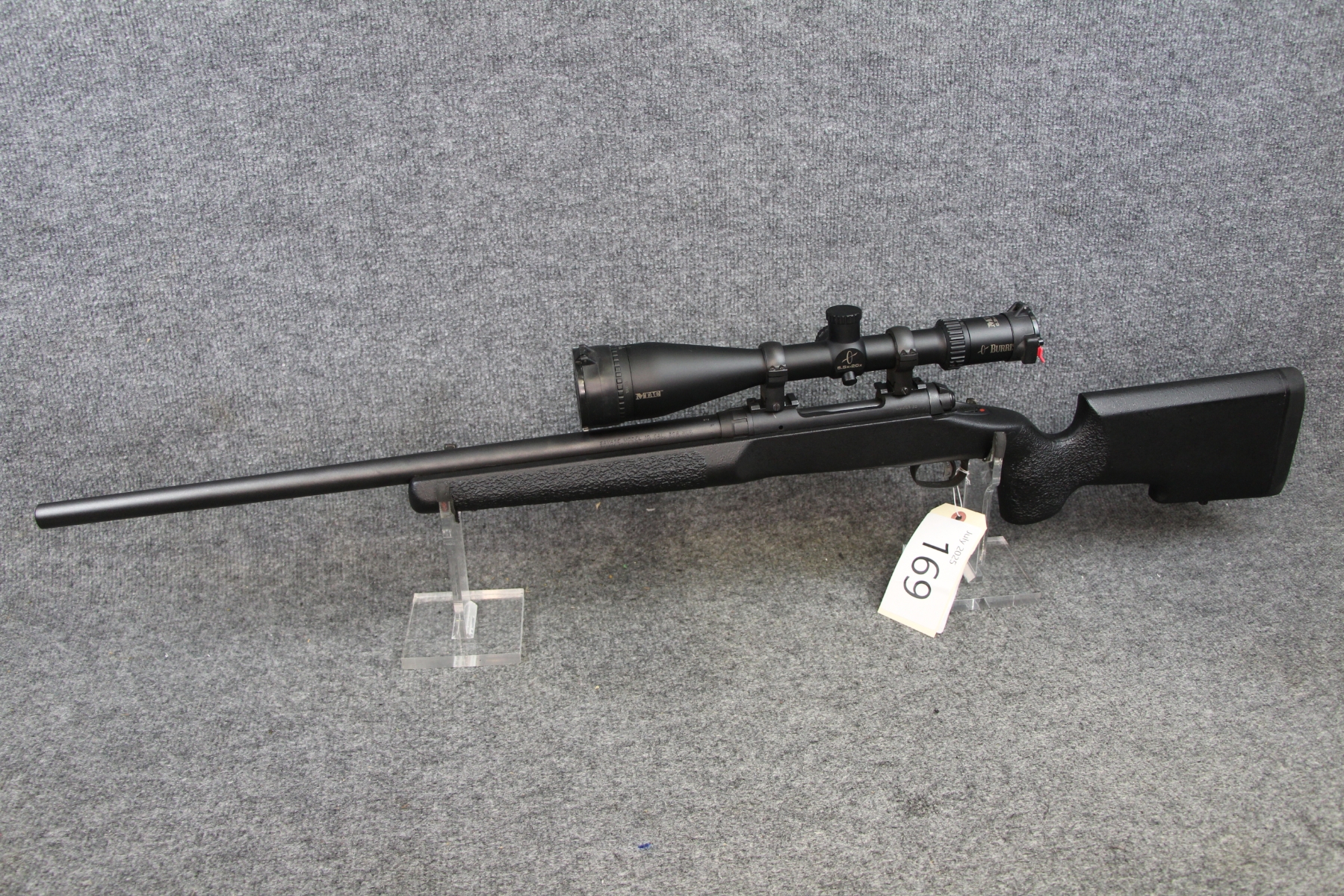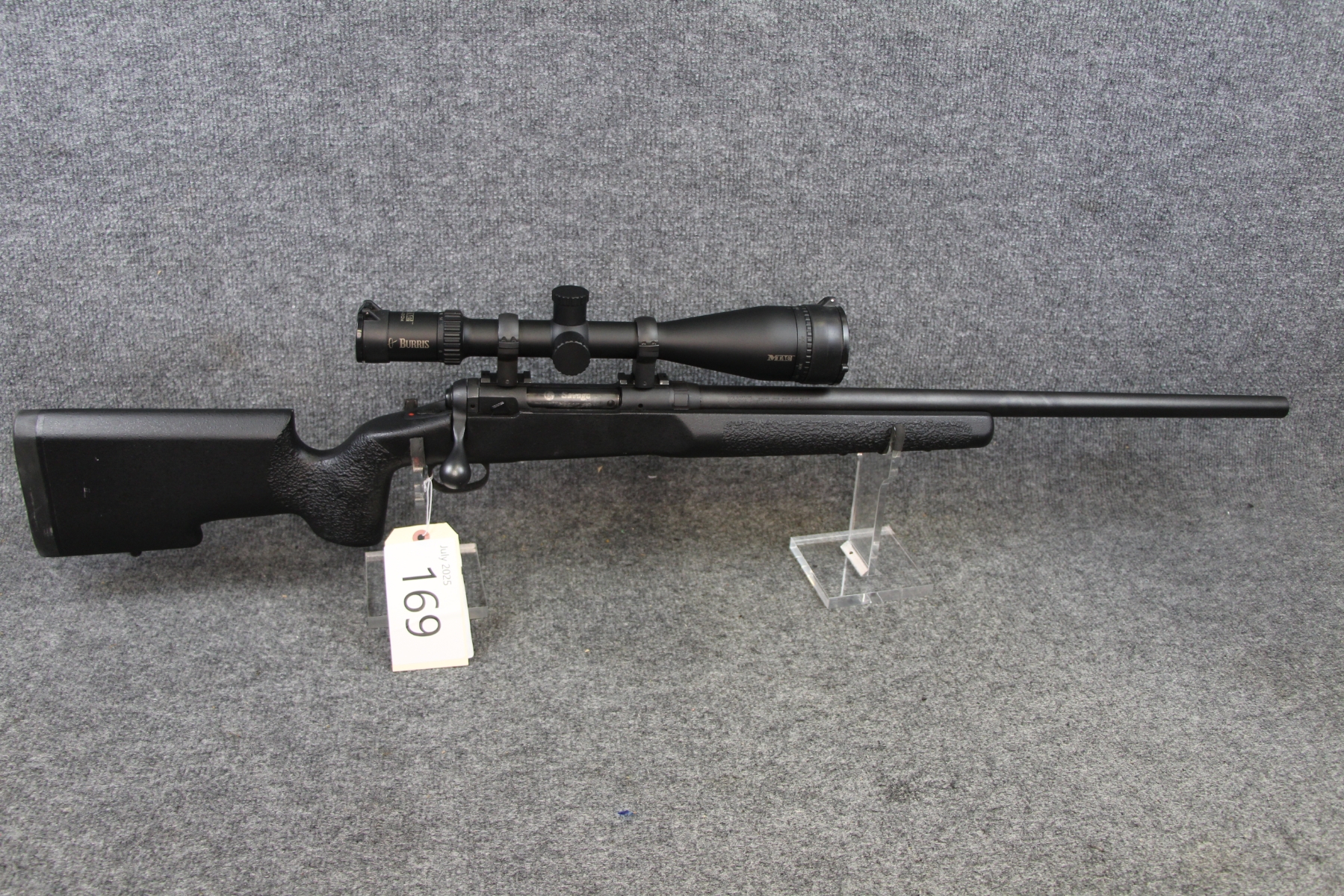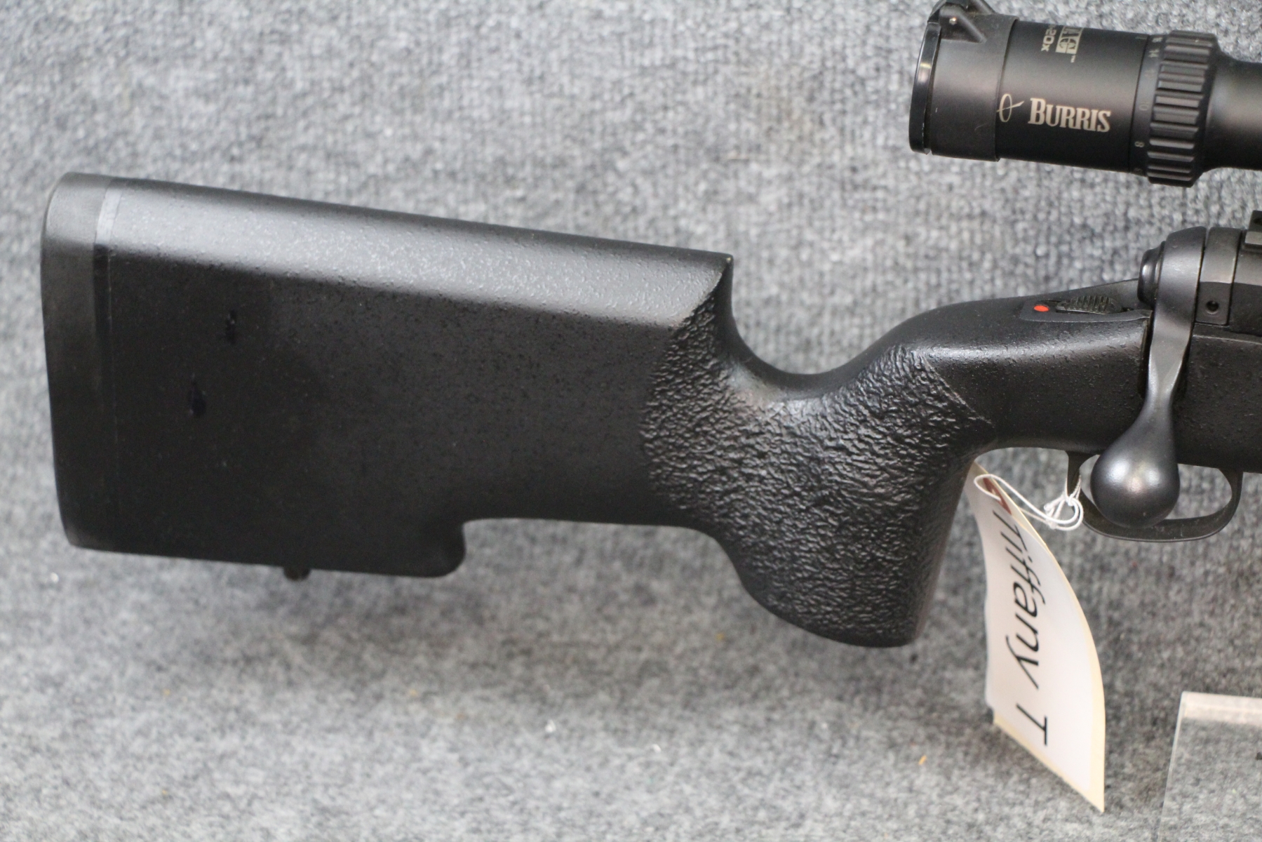 Not a mark on this gun. Floating bull barrel. Matte finish. McMillan stock. Comes with Burris MTAC 6.5x20x scope. Accu-trigger.