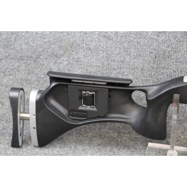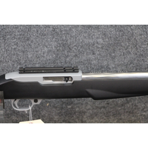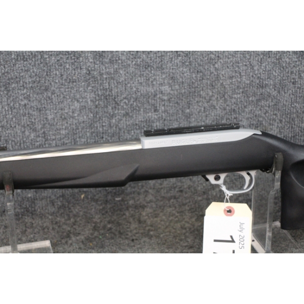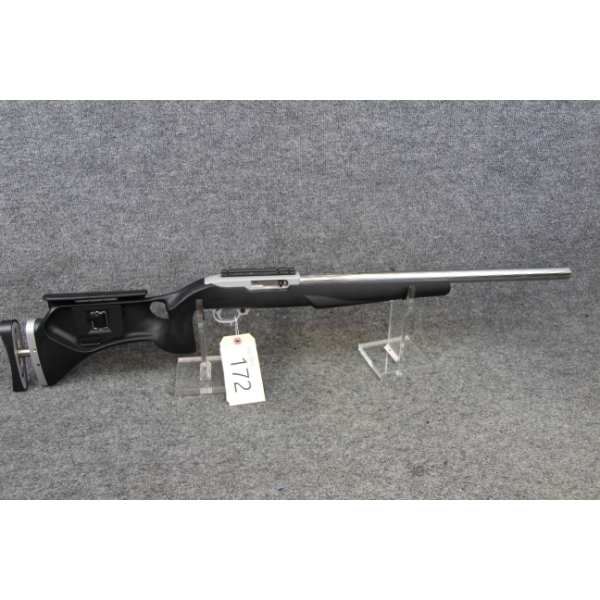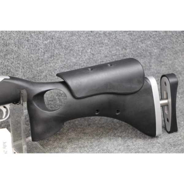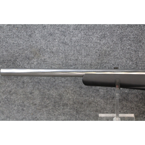 Not a mark on this gun. Polished, hammer forged, heavy nickel barrel in spiral shape. Composite stock with adjustable comb and LOP. Adjustable trigger. Scope from this in lot #173