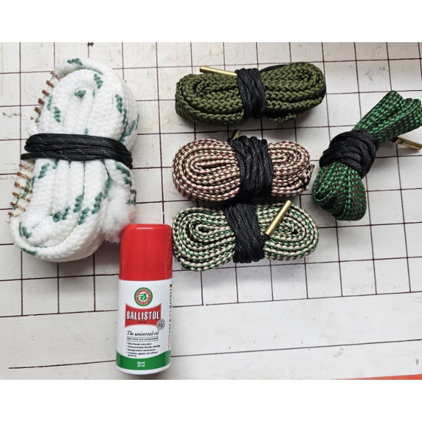 Balistol (1 oz.) 5 bore snakes: 12ga, 22, 308., 270, 9mm.