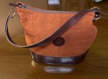 Argentinean Capybara leather handbag with zip closure top and two interior zip pockets. DSC FOUNDATION THANKS MARK & CAROL LITTLE FOR THIS 100% DONATION.