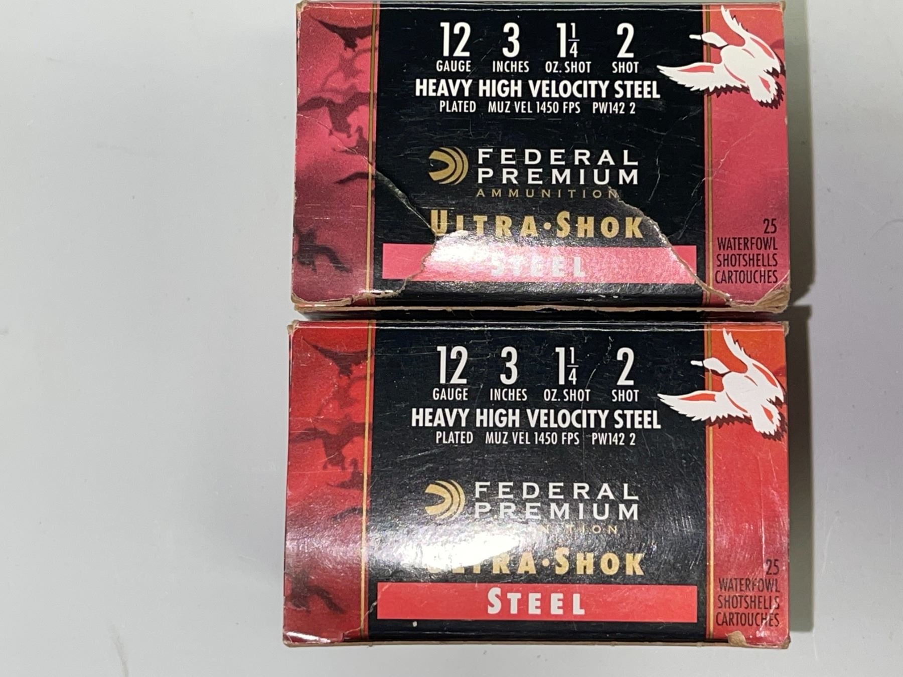 2 boxes of 25 Federal Premium Ultra-Shok Steel 12ga 3in 1 1/4oz 2 shot shells