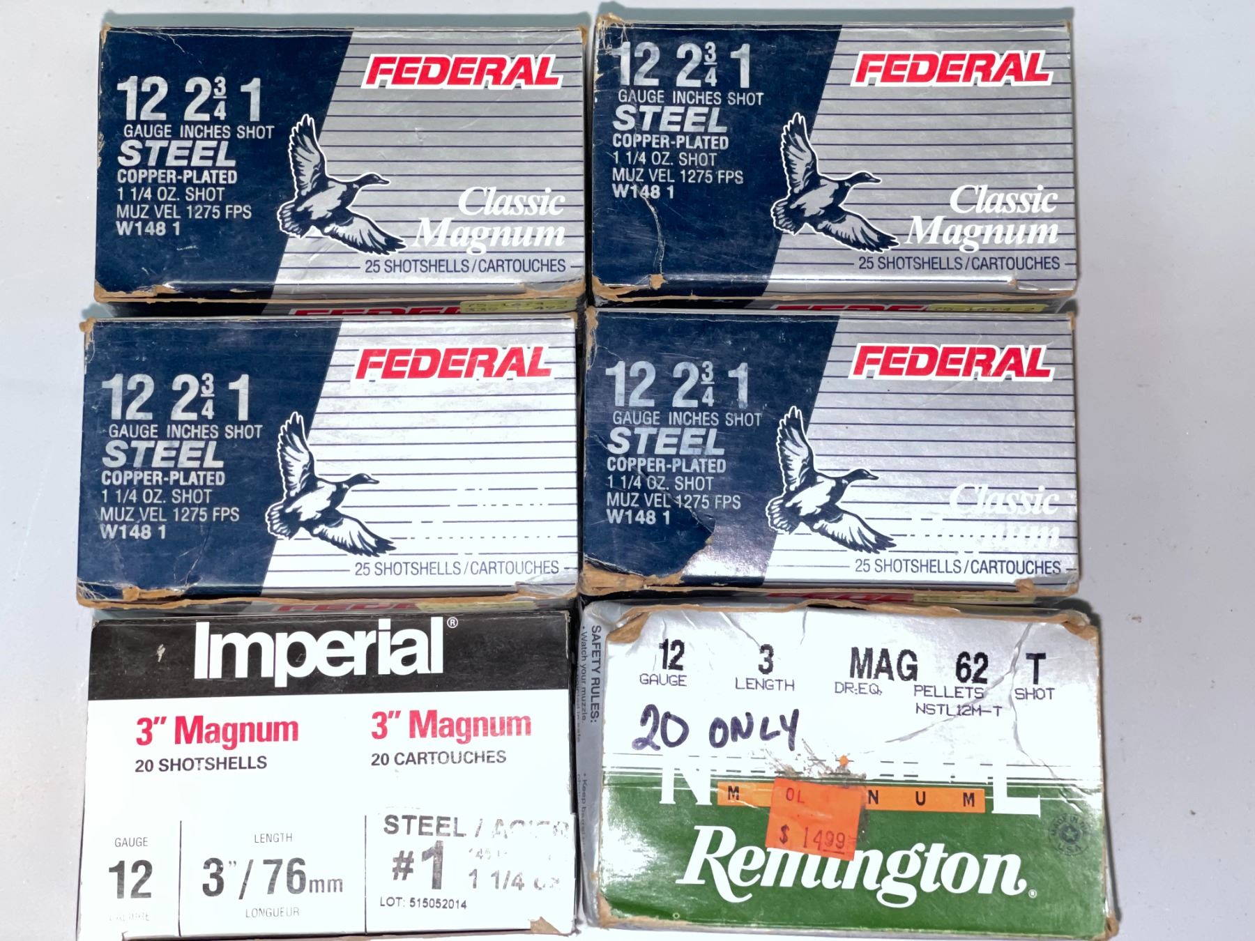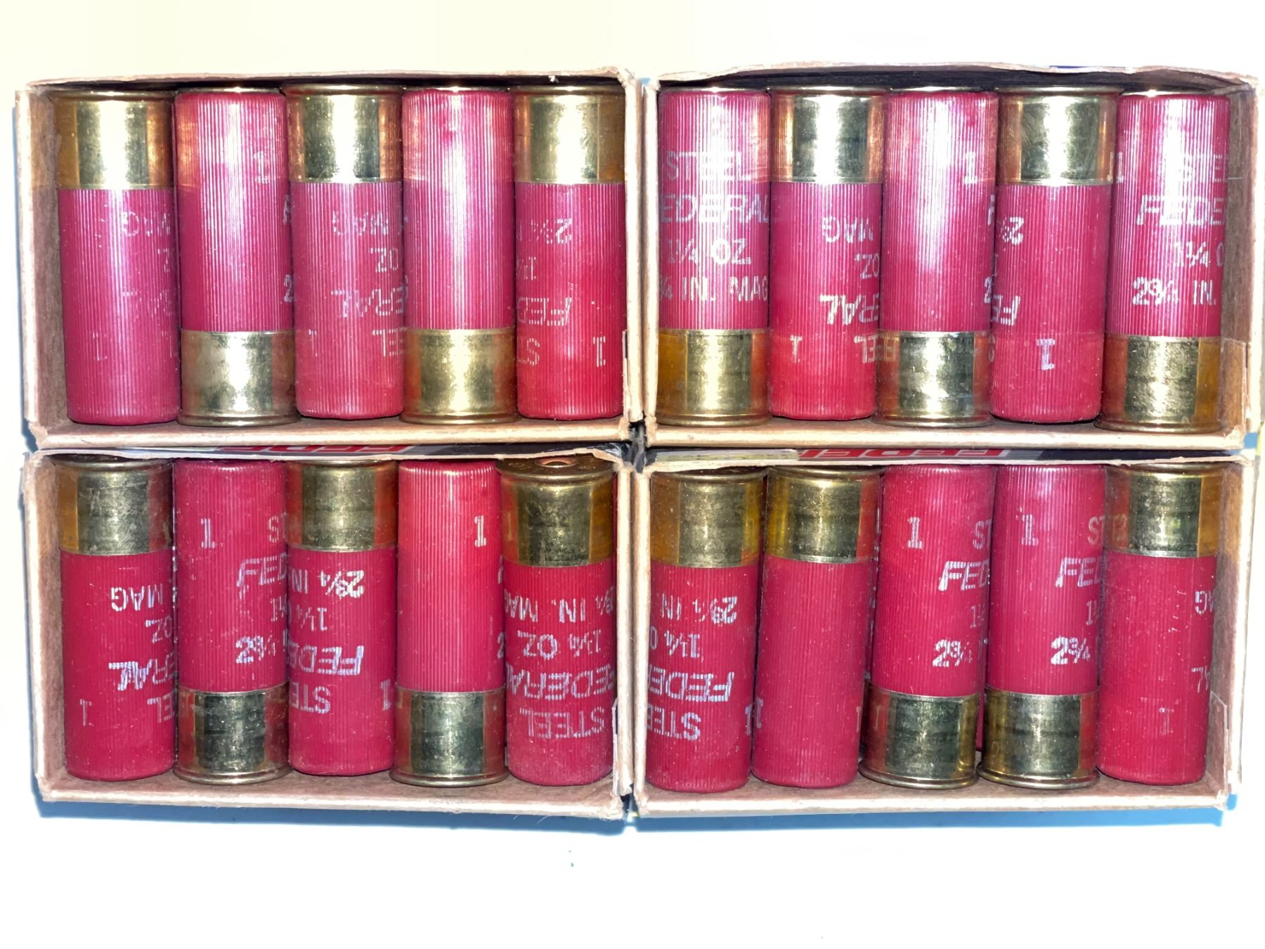 4 boxes of 25 each Federal Classic Magnum 12ga 2 3/4in 1 1/4oz 1 shot steel copper-plated shells