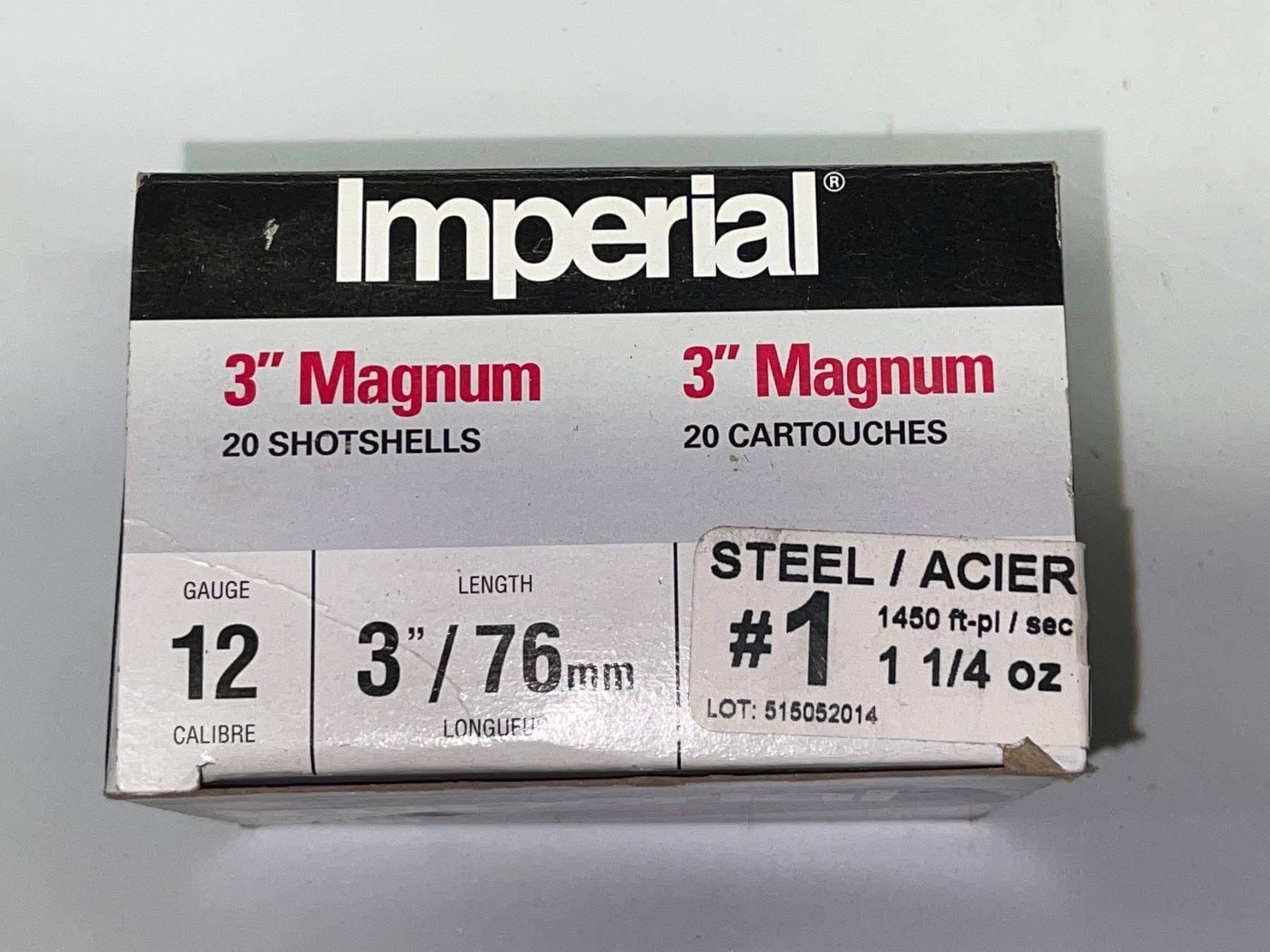 1 box of 20 Imperial Magnum Steel 12ga 3in 1 1/4oz #1 shot shells