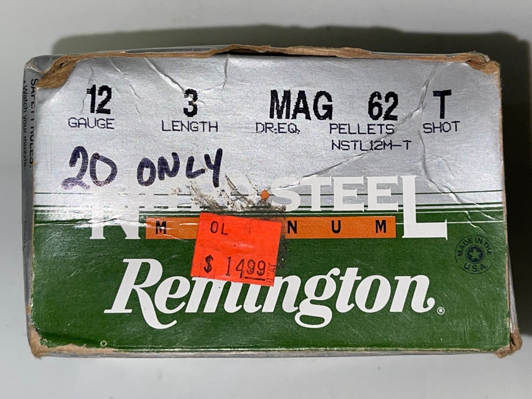 1 box of 20 Remington Nitro Steel Wes-proof 12ga 3in Mag 62 pellet T shot shells