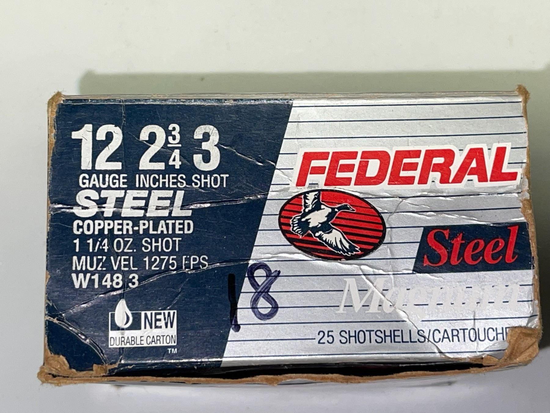 1 box of 18 Federal Magnum Steel 12ga 2 3/4in 1 1/4oz #3 shot shells